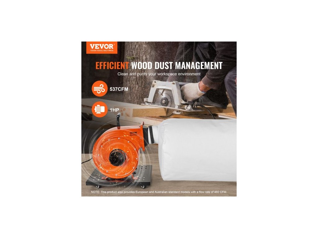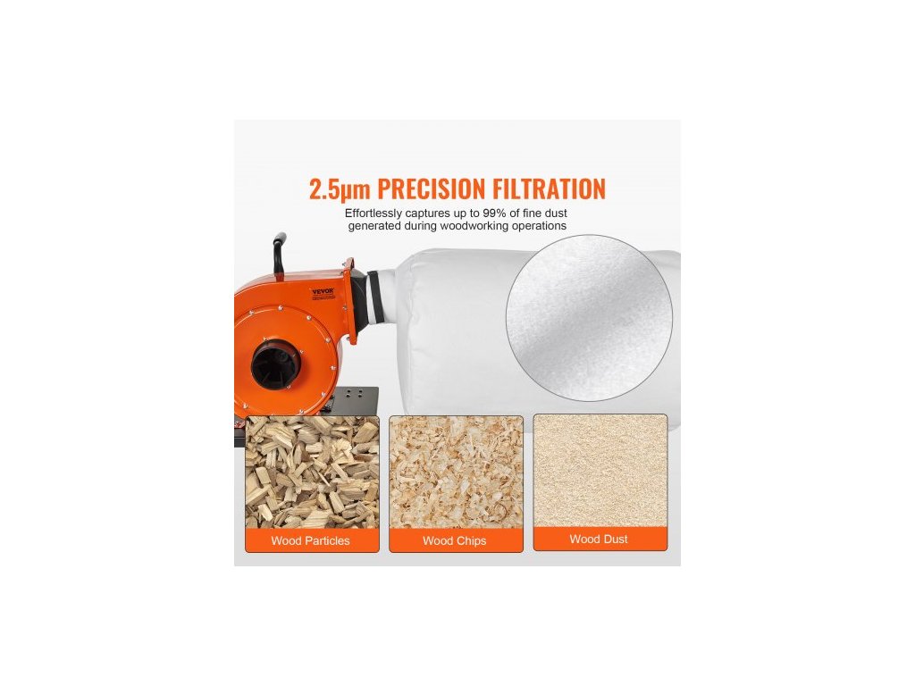 Odsávač prachu , průtok vzduchu 781,54 m³/h, rolovací odsavač prachu s 80litrovým sběrným vakem na prach, filtrace do vaku 2,5 mikronu, mobilní nádoba na dřevěný prach do průmyslové dílny s rukojetí a kolečky