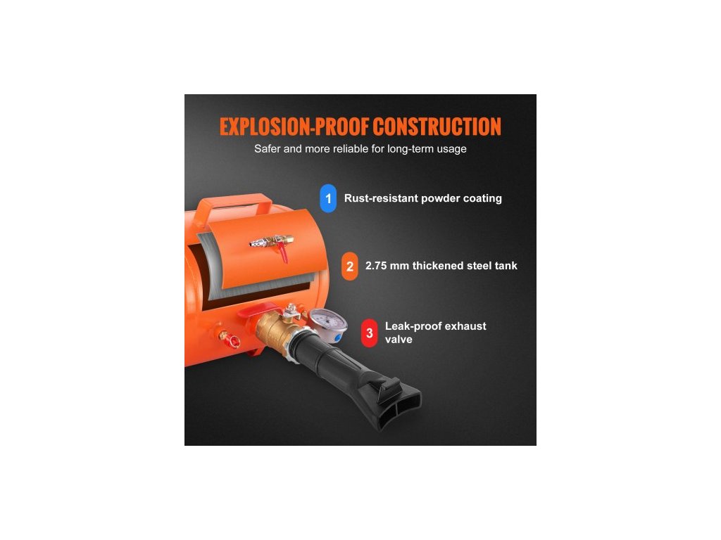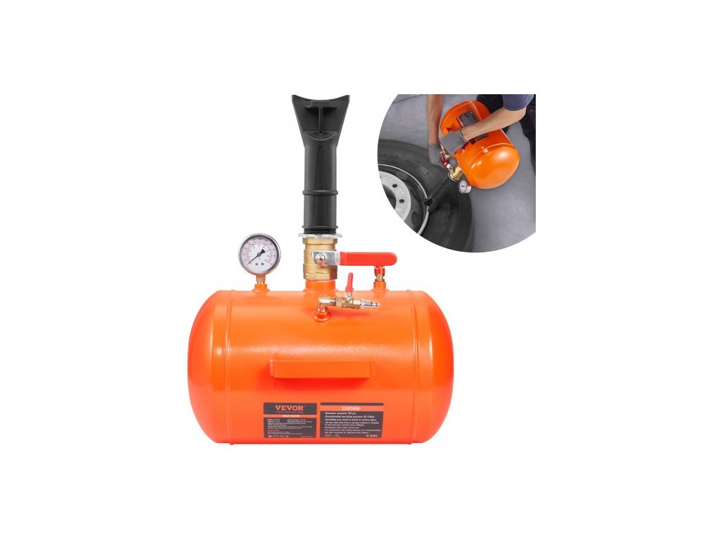 Odstraňovač patek pneumatik, vzduchový tryskač patek pneumatik o objemu 5 galonů/19 l s tlakoměrem a rukojetí, nádrž na hustilku 145 PSI, provozní tlak 85-116 PSI pro osobní automobily, nákladní automobily, čtyřkolky