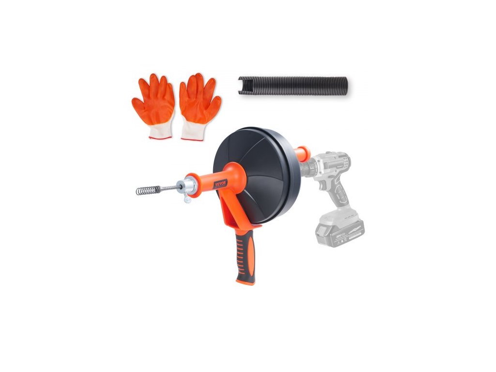 Odtokový vrták 762 cm, instalatérský had s vrtacím nástavcem, instalatérský odstraňovač ucpání odtoku had pro kuchyňský a koupelnový sprchový dřez s ochrannou hadicí a rukavicemi