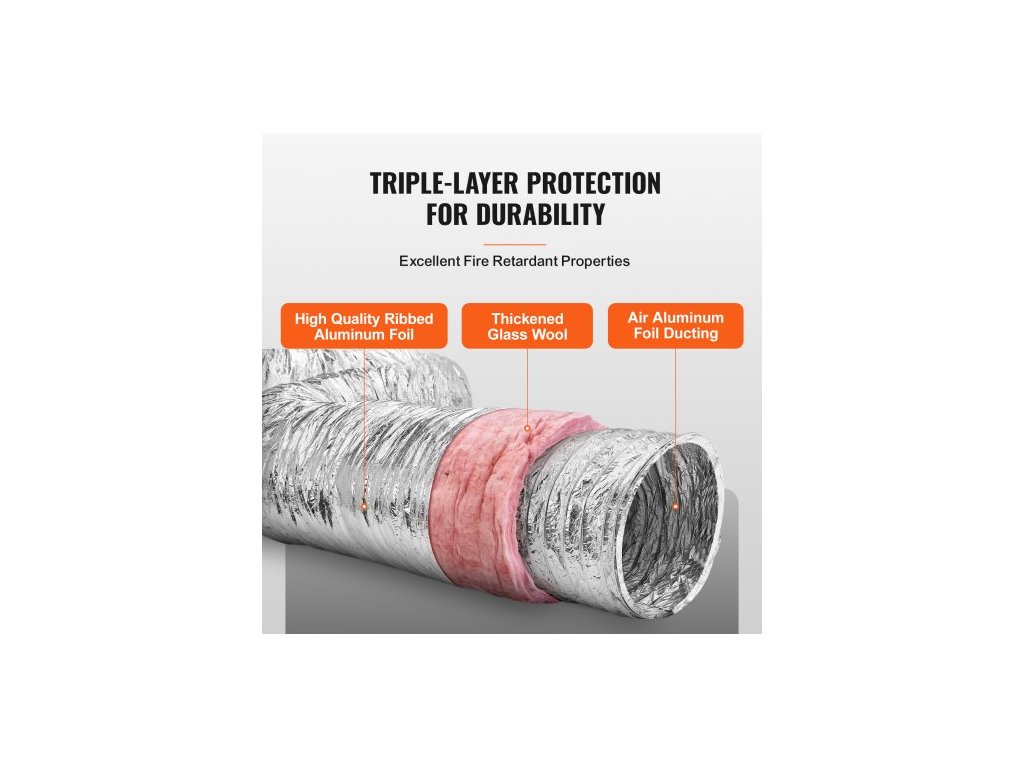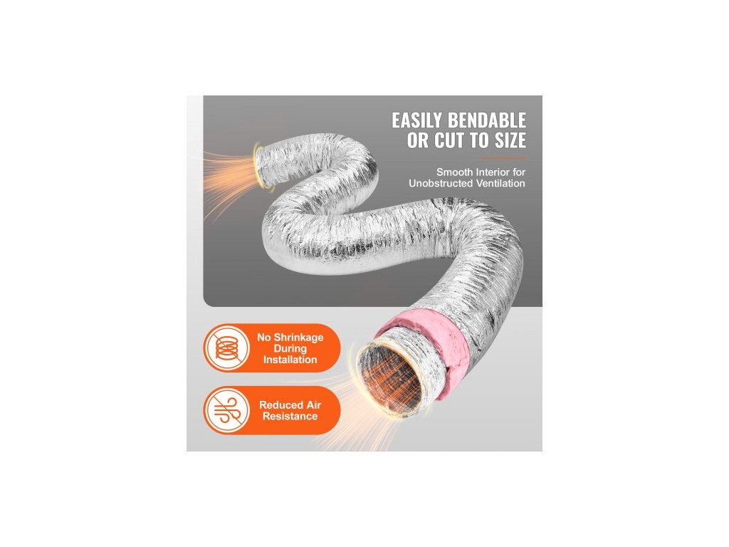 Odvzdušňovací hadice pro sušičku , 254 mm izolované flexibilní potrubí, délka 7,62 m, se 2 objímkami, odolná třívrstvá ochrana pro HVAC, vytápění, chlazení, větrání a odvod vzduchu, hodnota nehořlavosti R-6,0Flexibilní nastavení