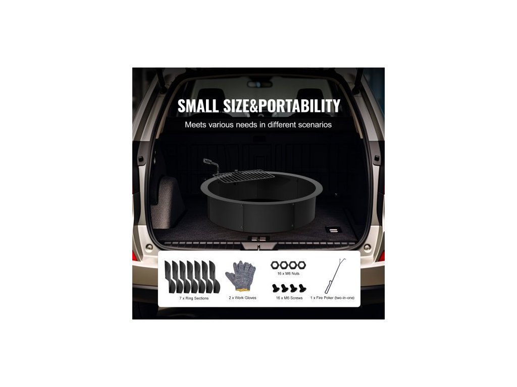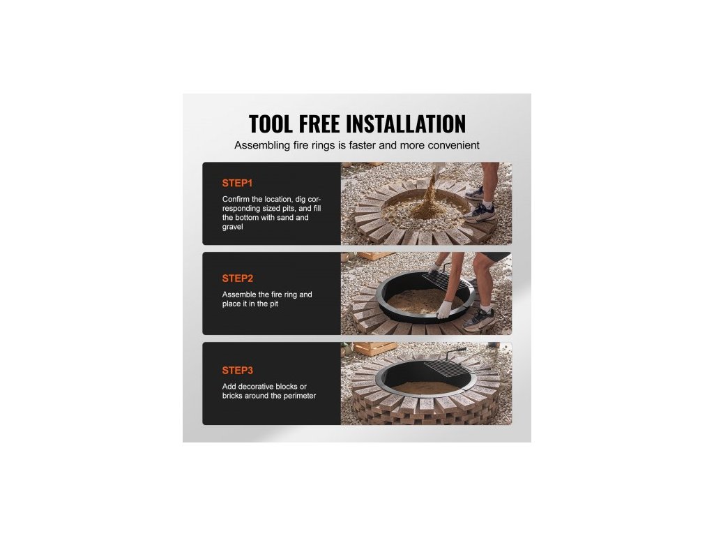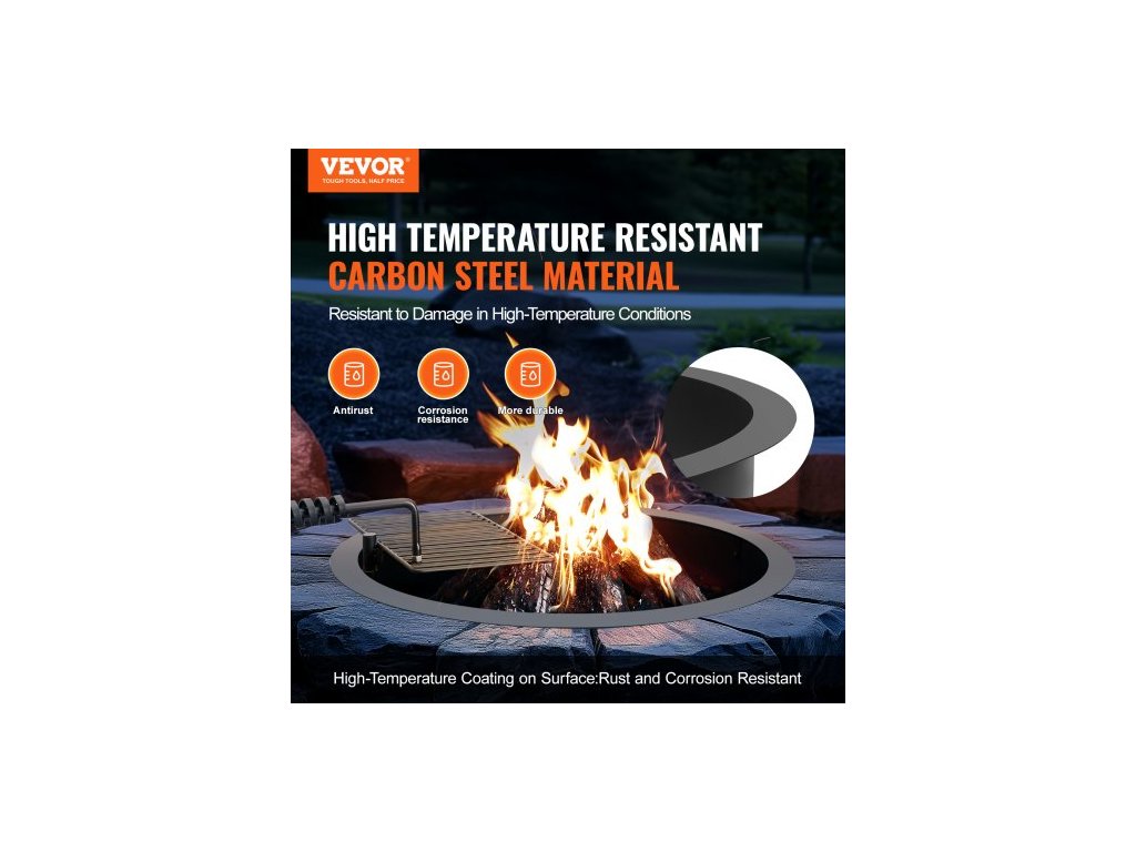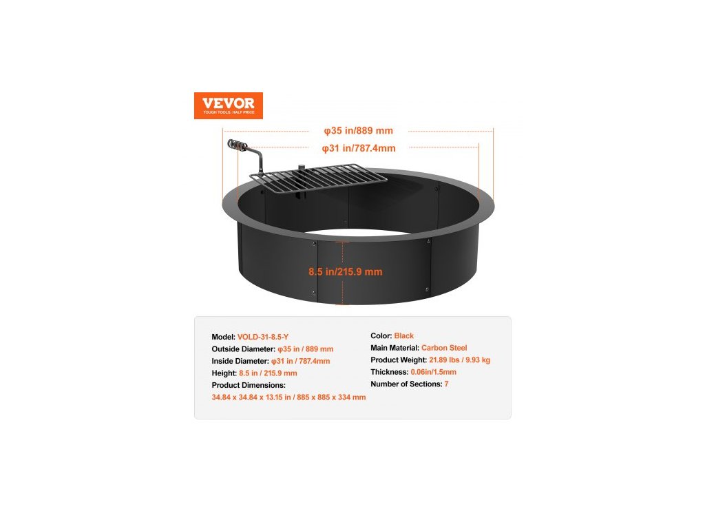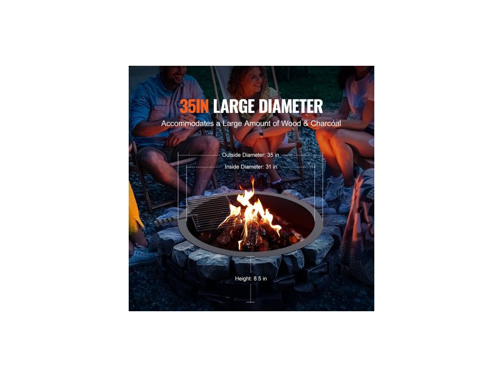 Ohniště, Vložka do ohniště s ohništěm na gril, Vnější průměr 35 palců / Vnitřní průměr 31 palců, Výška 8,5 palce, Vložka z uhlíkové oceli, Kroužek na oheň pro kutily nad/v zemi, Pro venkovní kempování, Ohně
