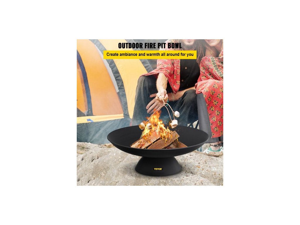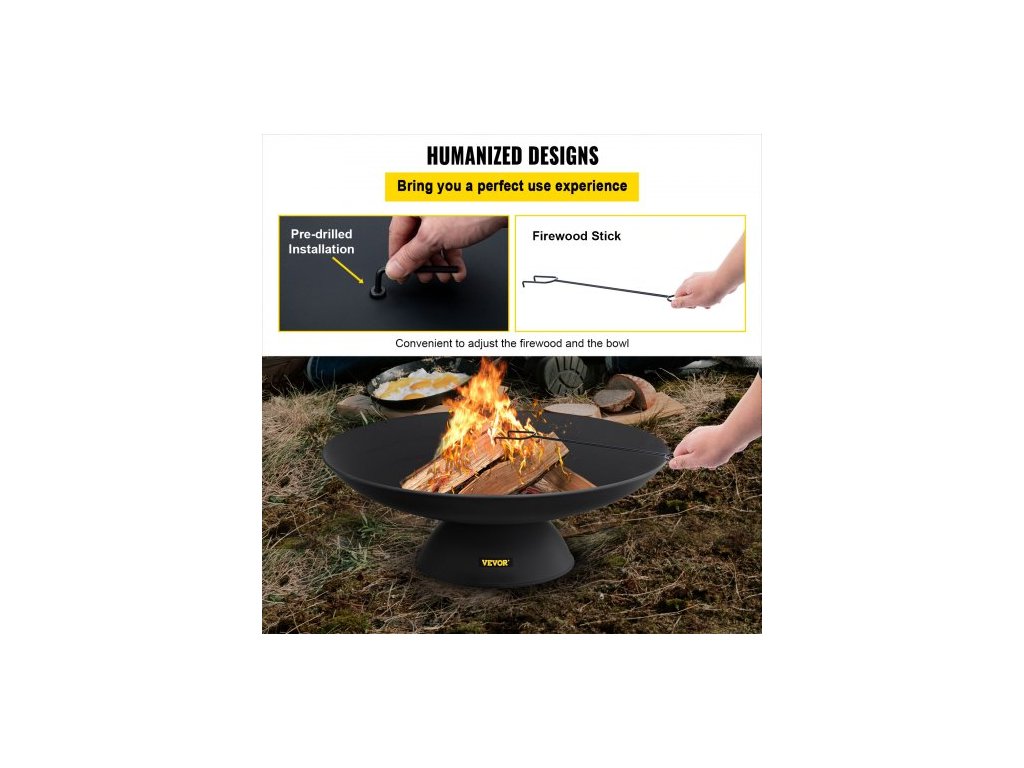 Ohniště , kulaté litinové ohniště o hloubce 76 cm, na dřevo pro venkovní terasy, zahrady a kempování, se stabilní základnou ve tvaru ohniště a tyčí na palivové dřevo, černéOhniště o průměru 76 cm