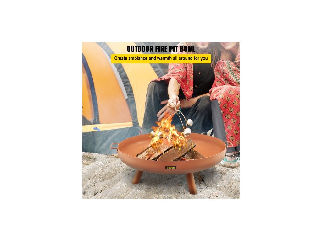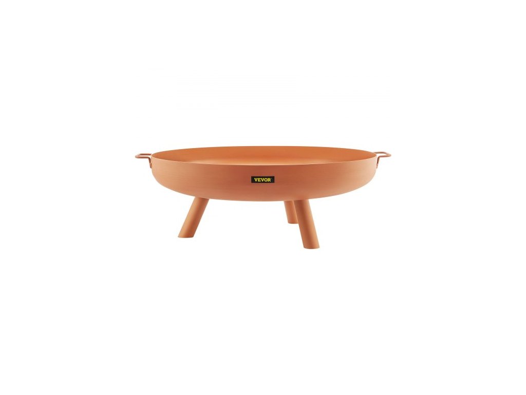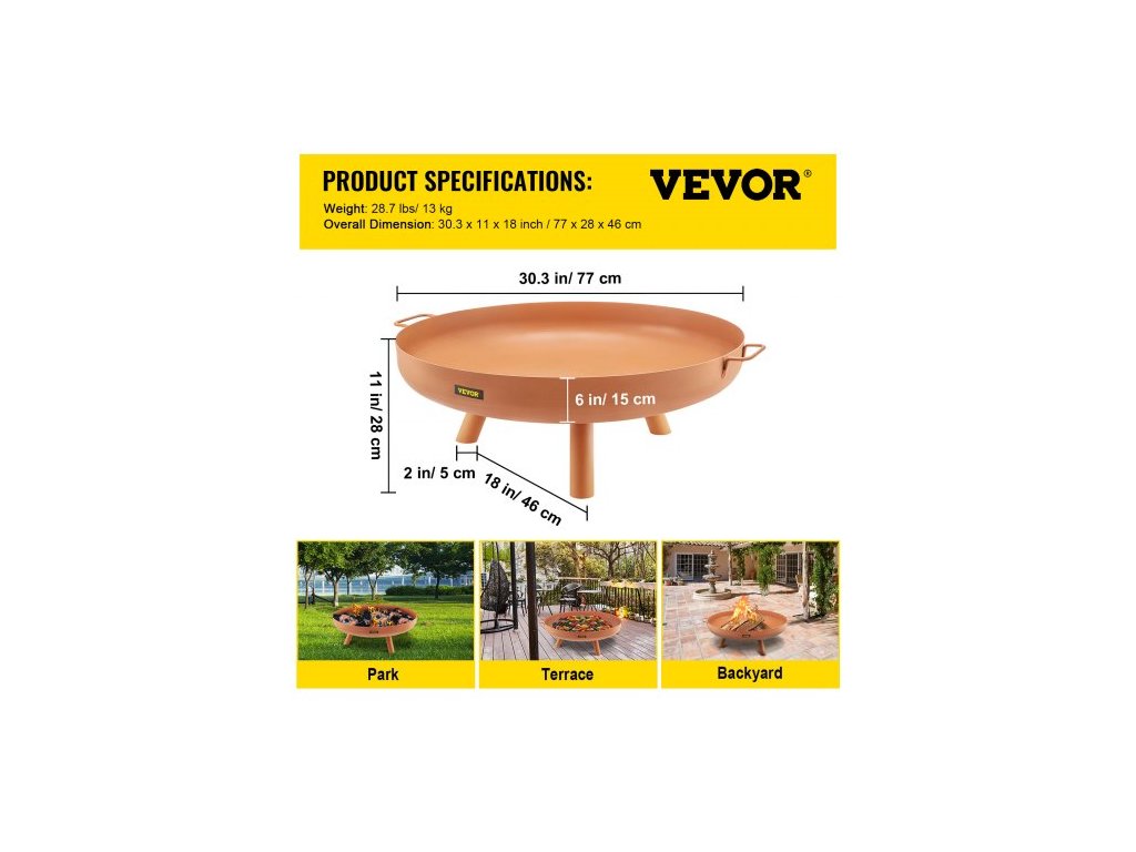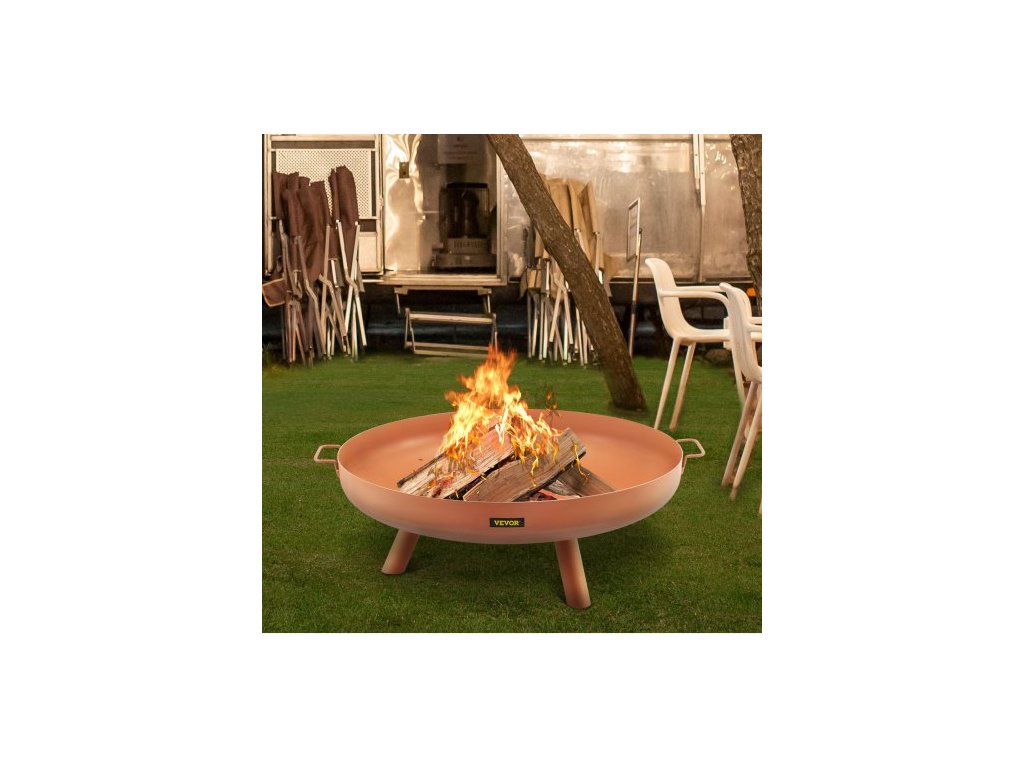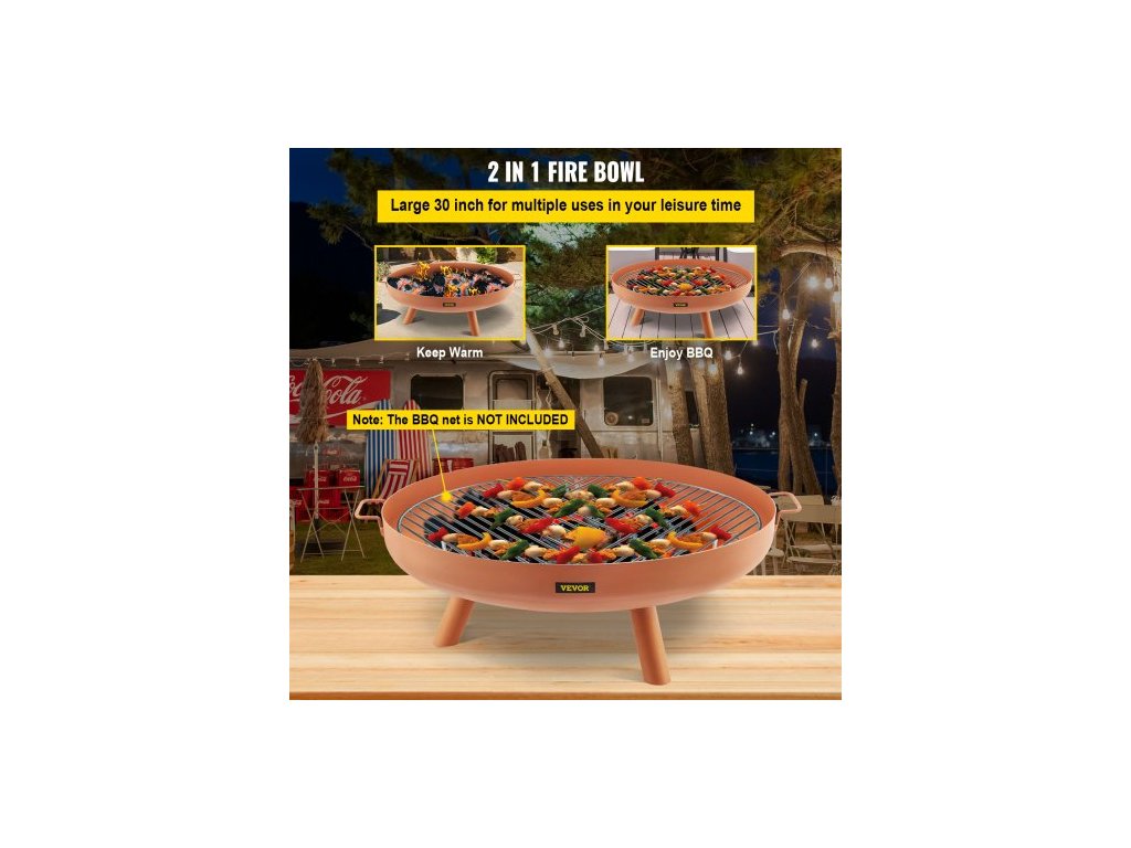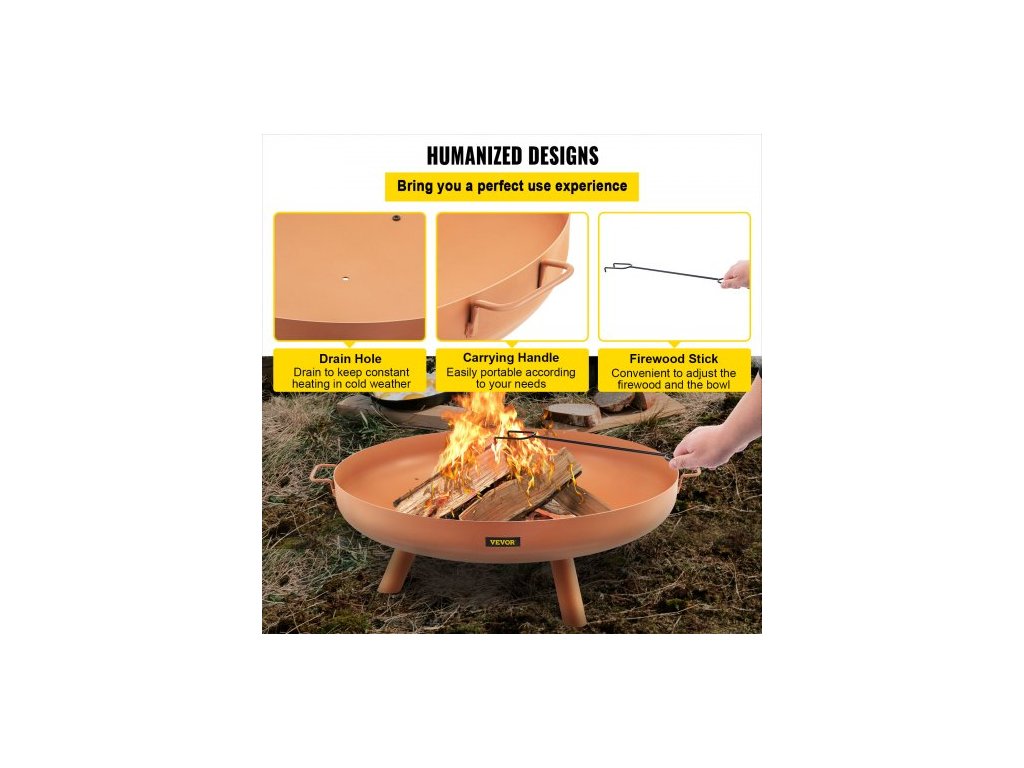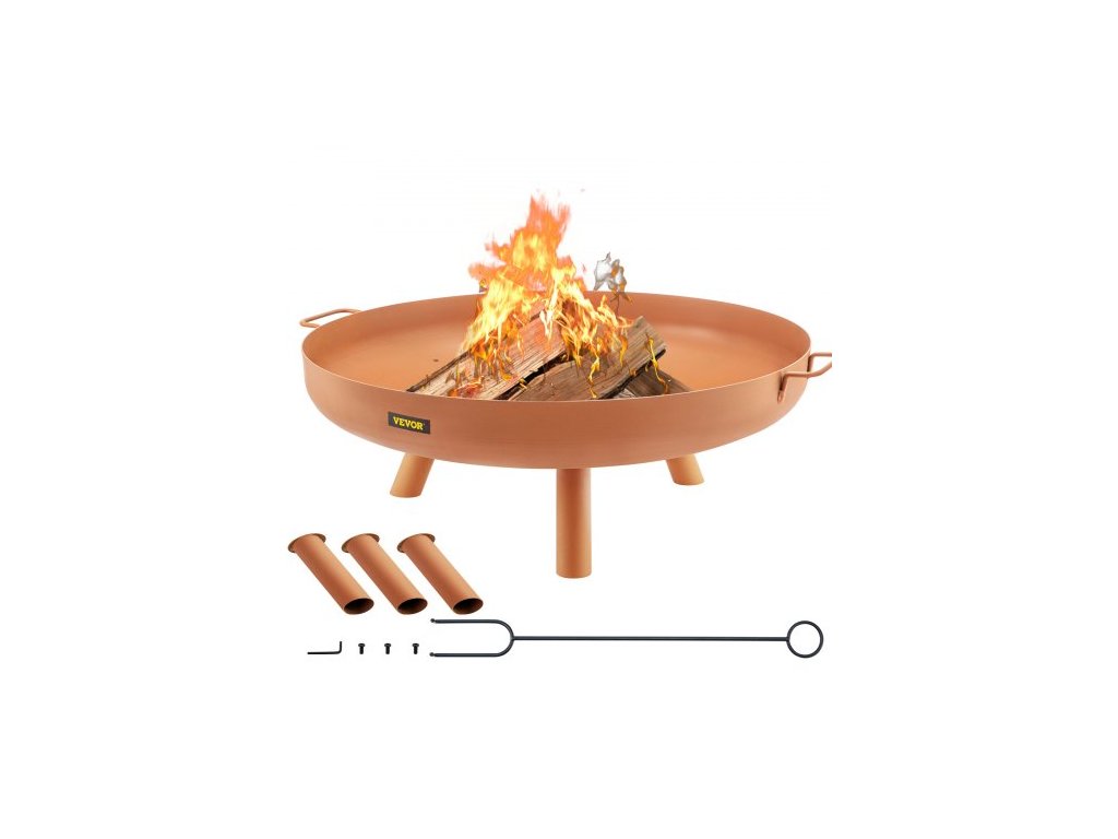 Ohniště , kulaté ohniště z uhlíkové oceli o hloubce 76 cm, na dřevo pro venkovní terasy, zahrady a kempování, s odtokovým otvorem, přenosnými rukojeťmi a tyčkou na palivové dřevo, hnědéOhniště 76 cm