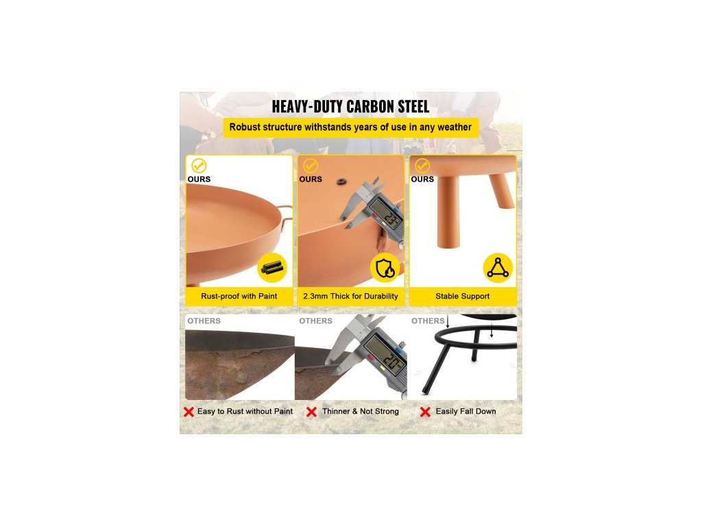 Průměr mísy: 77 cm,Hloubka mísy: 15 cm,Výška výrobku: 28 cm,Průměr nohou: 5 cm,Model: VV-FPB-30BN,Tloušťka mísy: 2,3 mm,Materiál: Lakovaná uhlíková ocel,Hmotnost výrobku: 13 kg