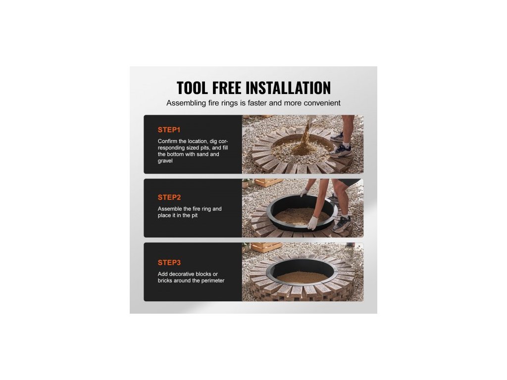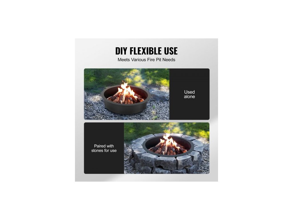 Ohniště , vnější průměr 35 palců/vnitřní průměr 31 palců, výška vložky do ohniště 10 palců, odolná vložka z uhlíkové oceli, kruh na táborák pro kutily nad nebo do země, pro venkovní kempování, ohně