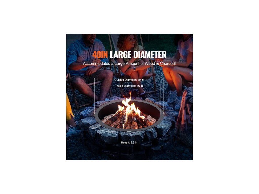 Ohniště , vnější průměr 40 palců/vnitřní průměr 36 palců, výška vložky do ohniště 8,5 palce, odolná vložka z uhlíkové oceli, ohniště pro kutily nad nebo zapuštěné, pro venkovní kempování, ohněVysokoteplotní nátěr