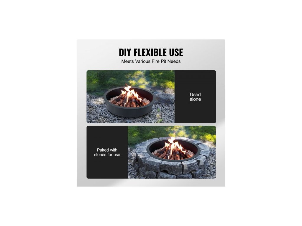 Ohniště , vnější průměr 40 palců / vnitřní průměr 36 palců, výška vložky do ohniště 8,5 palce, odolná vložka z uhlíkové oceli, kruh na táborák pro kutily nad nebo do země, pro venkovní kempování, ohně
