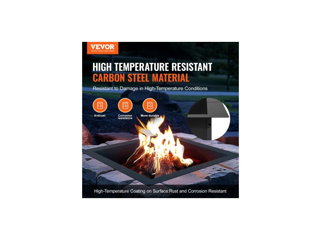 Ohniště , vnější průměr 42x42 palců / vnitřní průměr 36x36 palců, čtvercová vložka do ohniště o výšce 10 palců, odolná vložka z uhlíkové oceli, ohniště pro kutily nad nebo zapuštěné, pro venkovní kempování, ohněVysokoteplotní nátěr