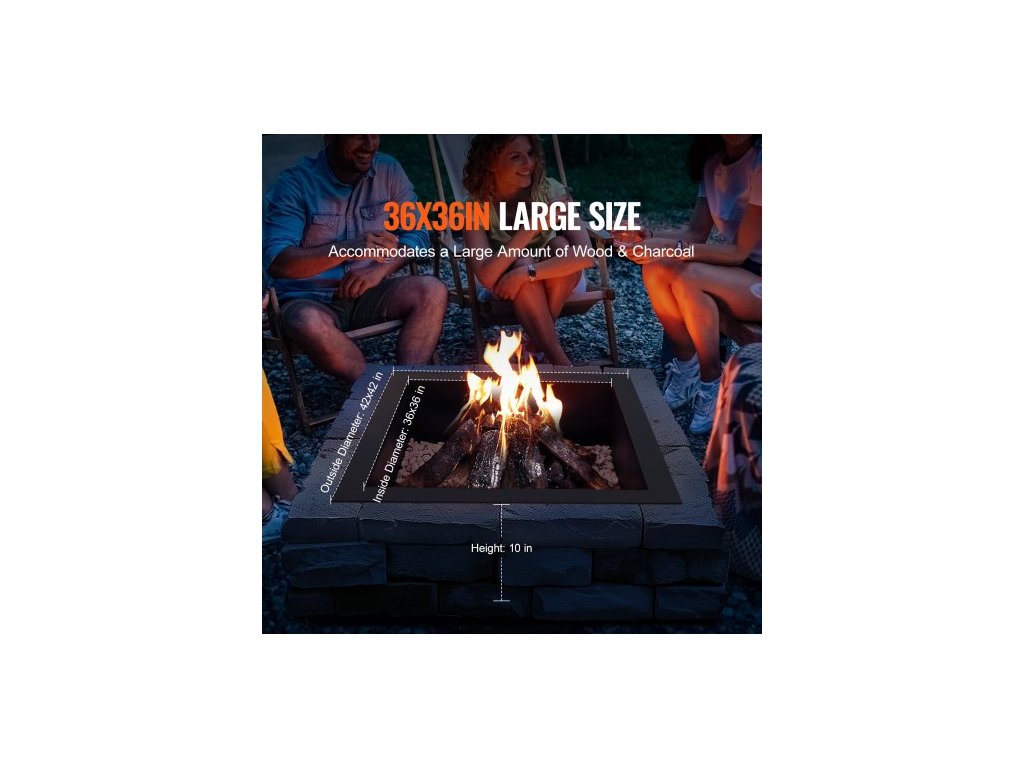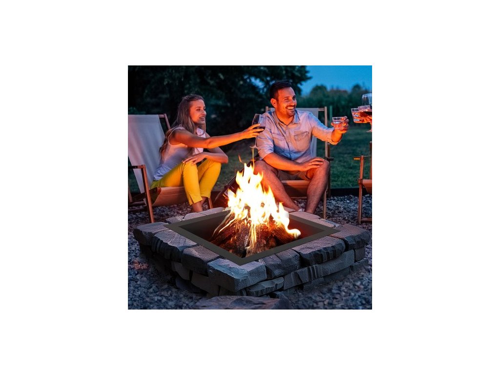 Ohniště , vnější průměr 42x42 palců / vnitřní průměr 36x36 palců, čtvercová vložka do ohniště o výšce 10 palců, odolná vložka z uhlíkové oceli, kruh na táborák, pro kutily, nad nebo do země, pro venkovní kempování, ohně