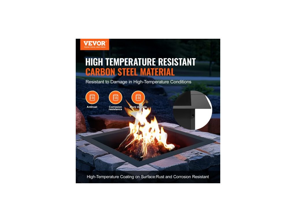 Ohniště , vnější průměr 36x36 palců / vnitřní průměr 30x30 palců, čtvercová vložka do ohniště o výšce 10 palců, odolná vložka z uhlíkové oceli, ohniště pro kutily nad nebo zapuštěné, pro venkovní kempování, ohněVysokoteplotní nátěr