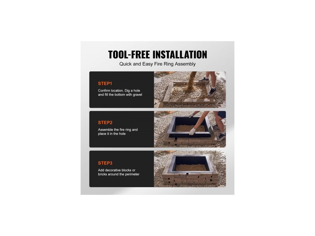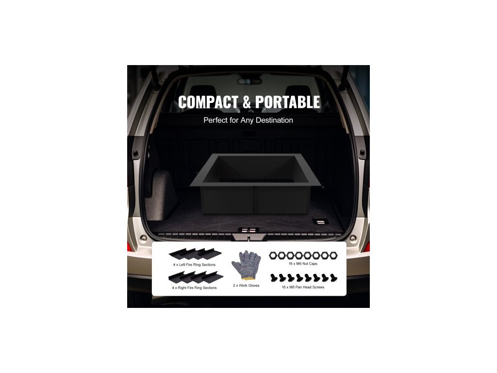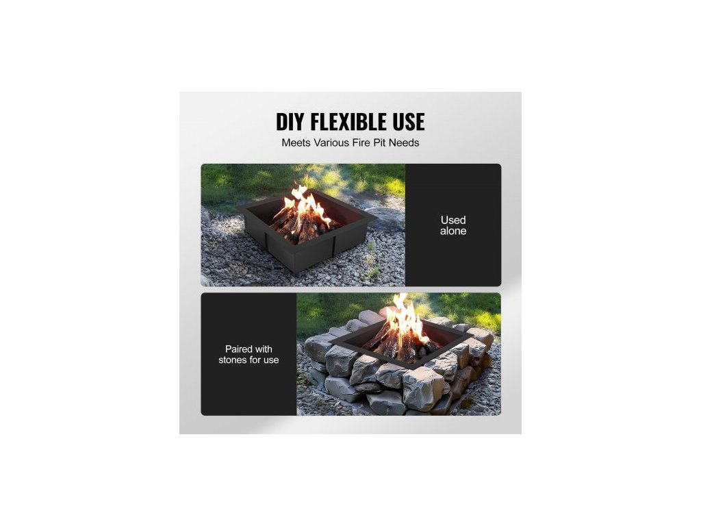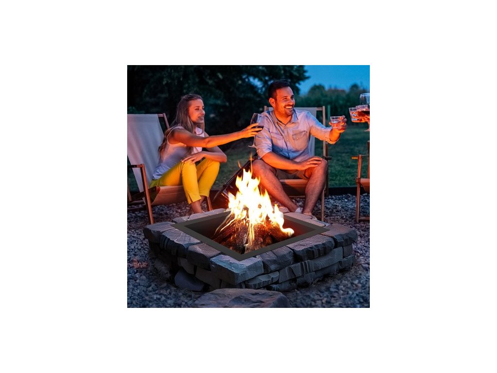 Ohniště , vnější průměr 91x91 cm / vnitřní průměr 76x76 cm, čtvercová vložka do ohniště o výšce 25 cm, odolná vložka z uhlíkové oceli, kruh na táborák, nad nebo do země, pro venkovní kempování, ohně