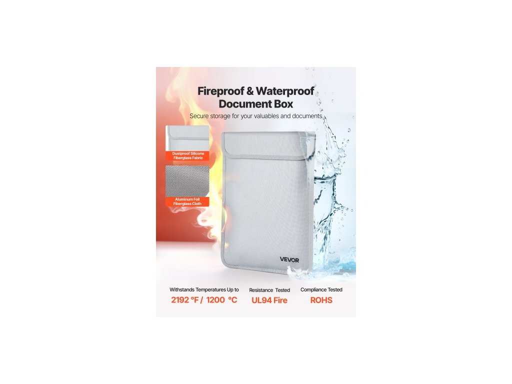 Ohnivzdorná taška na dokumenty, 1200 ℉ Tepelně izolovaná nehořlavá a vodotěsná taška s hladkým zipem, přenosný organizér na uložení dokumentů, domácí kancelář, cestovní potřeby, na pasy, důležité dokumenty, souboryChraňte své cennosti