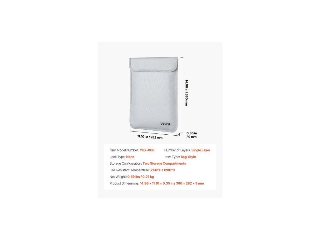 Ohnivzdorná teplota: 2192 °F / 1200 °C,Typ zámku: Žádný,Počet vrstev: Jedna vrstva,Číslo modelu položky: YHX-006,Typ položky: Ve stylu tašky,Konfigurace úložiště: Dvě úložné přihrádky,Rozměry produktu: 14,96 x 11,10 x 0,35 palce / 380 x 282 x 9 mm,Čistá hmotnost: 0,59 lbs / 0,27 kg