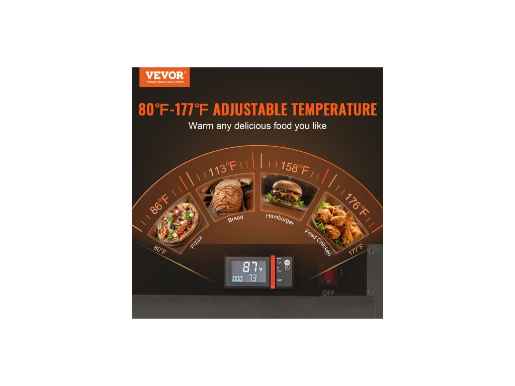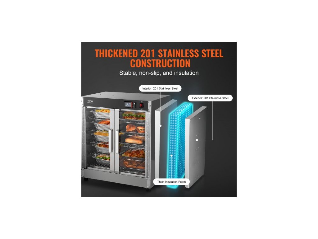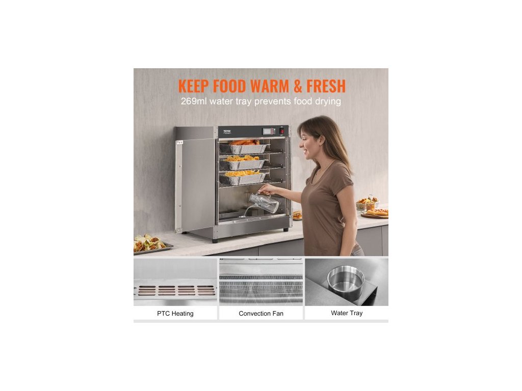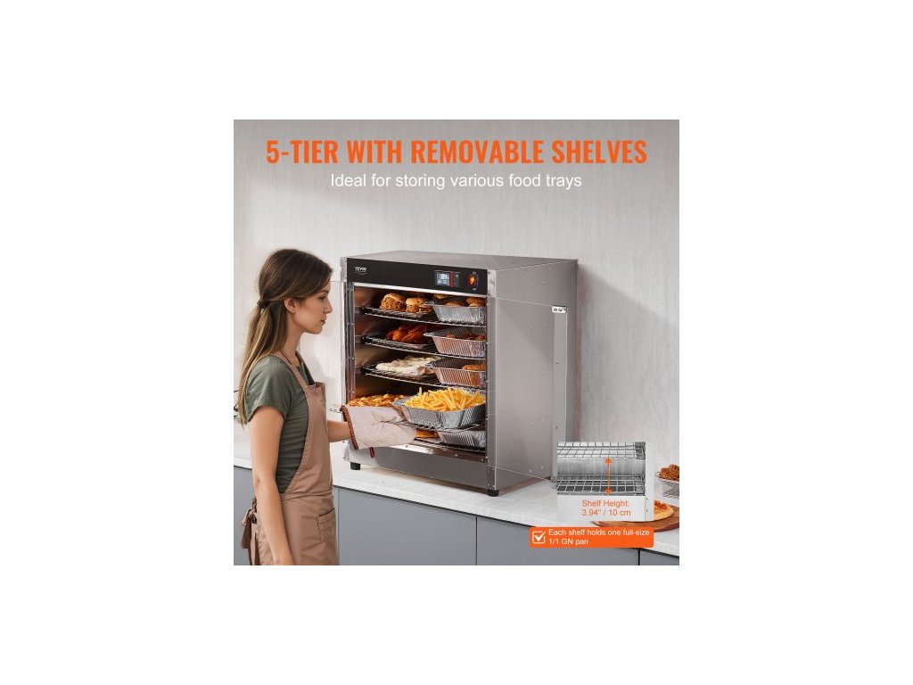 Počet polic: 5,Doba ohřevu na maximální teplotu: 20 minut,Číslo modelu položky: FWHB-400*600-5,Teplotní rozsah: 80°F-177°F,Výška police: 3,94 palce / 10 cm,Čistá hmotnost: 48,5 lbs / 22 kg,Příkon: 850 W