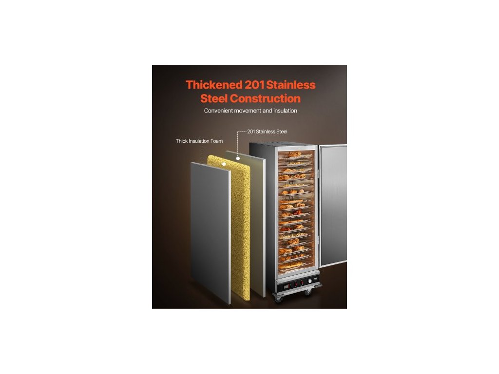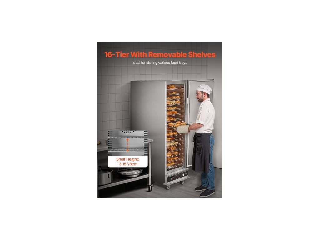 Ohřívač potravin Hot Box, 16patrový velký ohřívač potravin s vodní miskou, jednokřídlé dveře a nastavitelné police, nerezová ohřívací skříňka na potraviny, ideální pro skladování pizzy, kuřete, restaurace