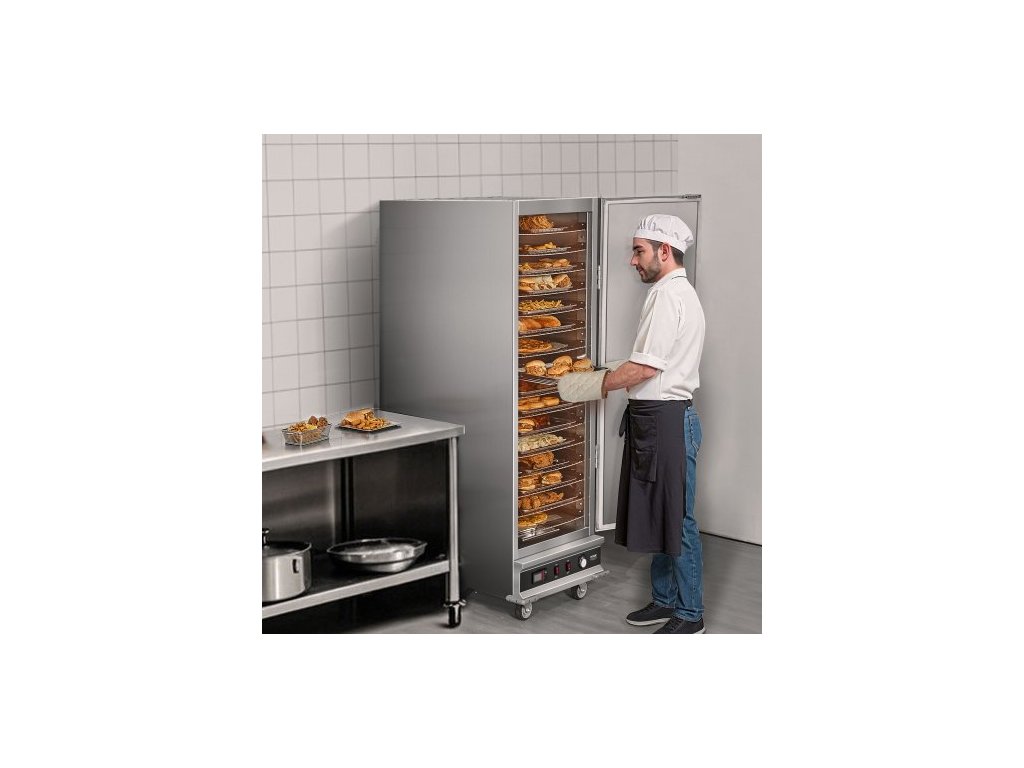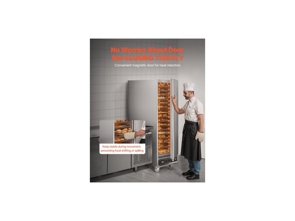 Ohřívač potravin Hot Box, 16patrový velký ohřívač potravin s vodní miskou, jednokřídlé dveře a nastavitelné police, nerezová skříň na ohřívání potravin, ideální pro skladování pizzy, kuřete, restauraceUdržuje jídlo teplé a čerstvé