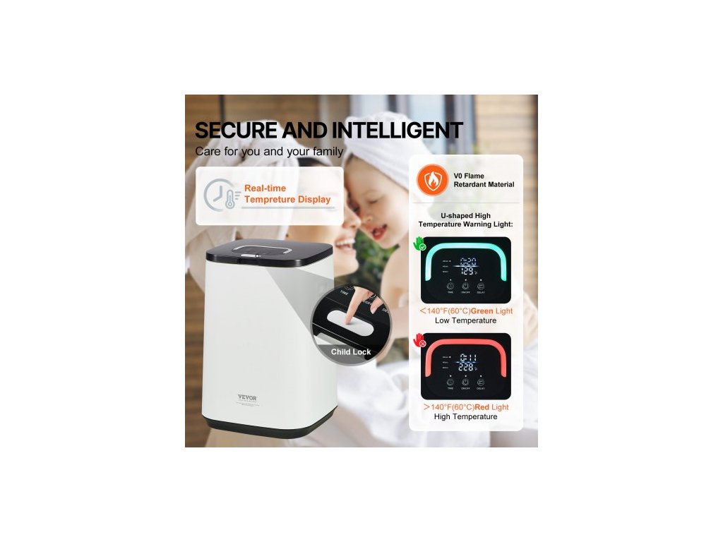 Ohřívače ručníků do koupelny, kbelík s dětskou pojistkou, indikátorem vysoké teploty, 24hodinovým časovačem a automatickým vypnutím, vejde se až do 4 velkých ručníků, dek, oblečení, županů a dalších věcí.