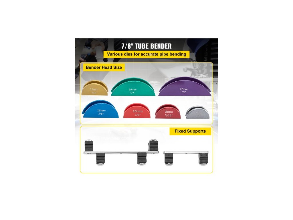 Ohýbačka měděných trubek , 7 barevných matric 1/4-7/8 palce, ohýbání vpřed a vzad o 90 stupňů, 6-22 mm pro měděné a hliníkové trubky s nástavcem pro ohýbání vzad