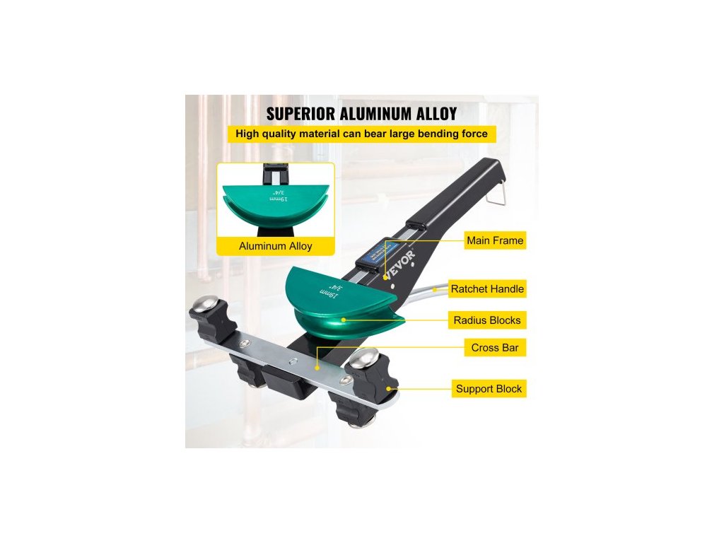 Ohýbačka měděných trubek , 7 barevných matric 1/4-7/8 palce, ohýbání 90 stupňů vpřed a vzad, 6-22 mm pro měděné a hliníkové trubky s nástavcem pro ohýbání vzadÚhel ohybu 90 stupňů