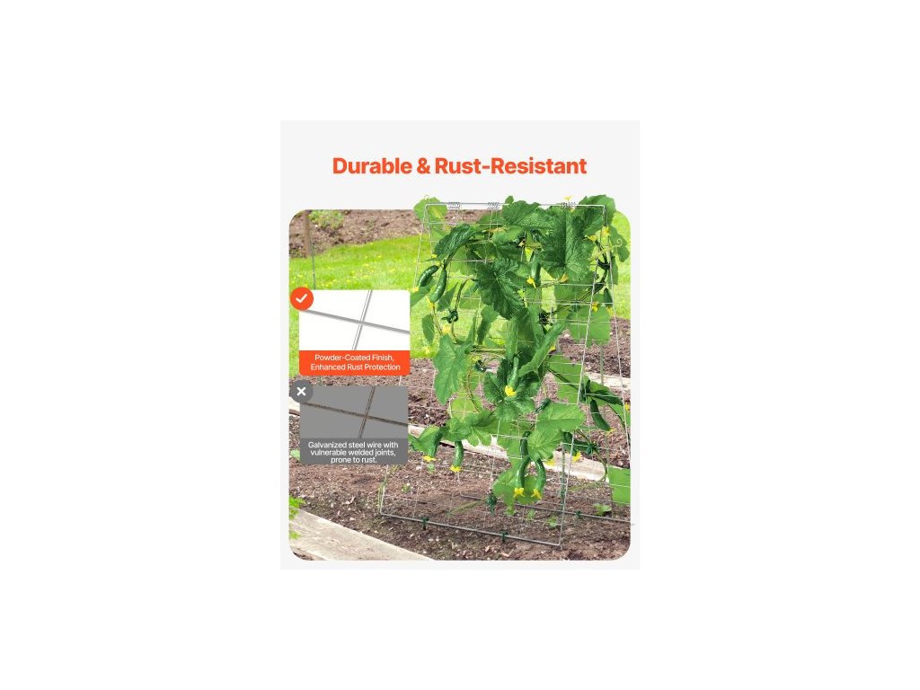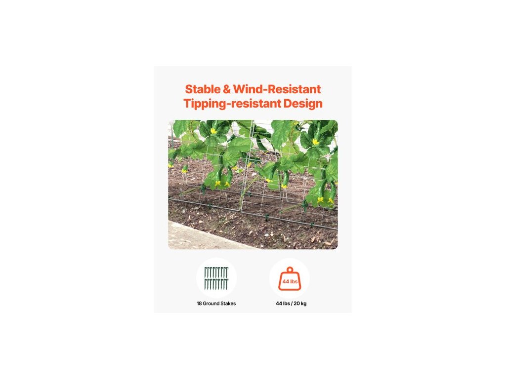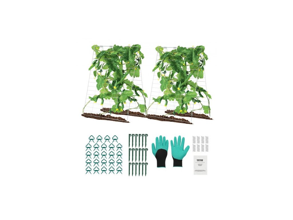 Okurková treláž pro popínavé rostliny, skládací sada okurkových trelážů 91 x 147 cm s klipy na rostliny, kovová zahradní treláž pro vyvýšený záhon, venkovní opora pro pěstování rajčat, dýní a zeleniny