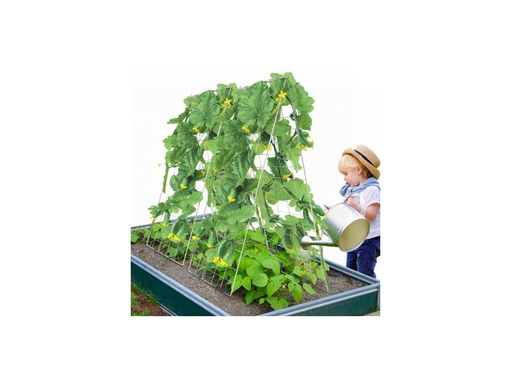 Okurková treláž pro popínavé rostliny, skládací sada okurek 35" x 55" s klipy na rostliny, kovová zahradní treláž pro vyvýšený záhon, venkovní opora pro pěstování rajčat, dýní a zeleninyA-rámová okurková treláž