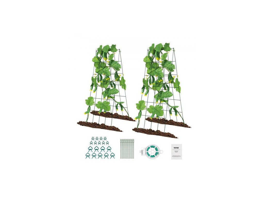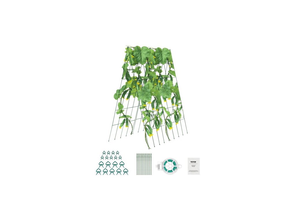 Okurková treláž pro popínavé rostliny, skládací sada okurek 94 x 81 cm s úchyty, kovová zahradní treláž pro vyvýšený záhon, venkovní opora pro pěstování rajčat, dýní a zeleniny, okurková treláž s A-rámem, vyrobená pro venkovní použití, snadná obsluha, skládací a skladovací, široce použitelná, prostorově úsporná konstrukce, jeden kus: 100 x 40 cm, rozměr mřížky: 15 x 8,9 cm, barva: zelená, číslo modelu: HGPJ001, dvoudílná sada: 100 x 80 cm, materiál: železo, rozměry výrobku: čistá hmotnost: 2,9 kg / 2,89 kgDoplňkové parametry