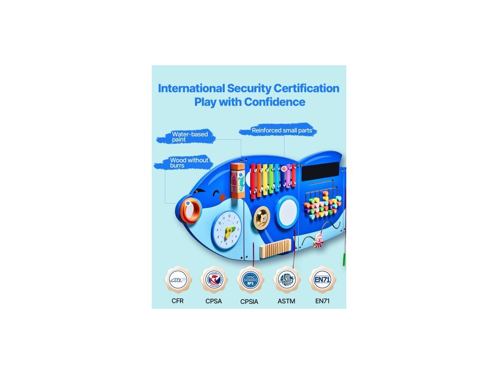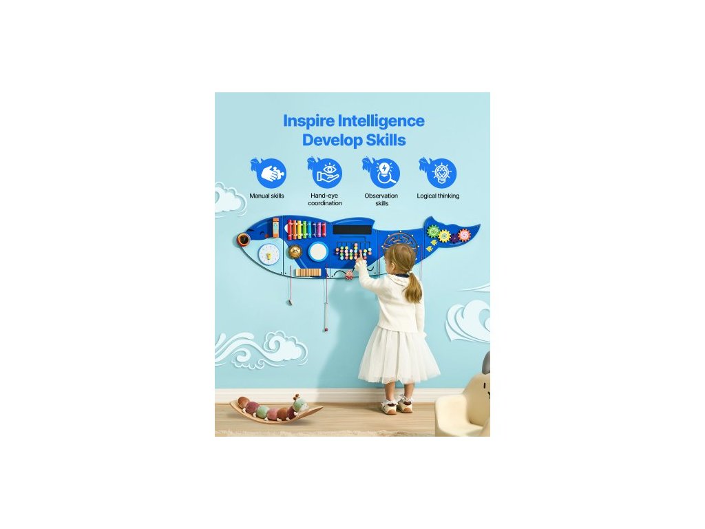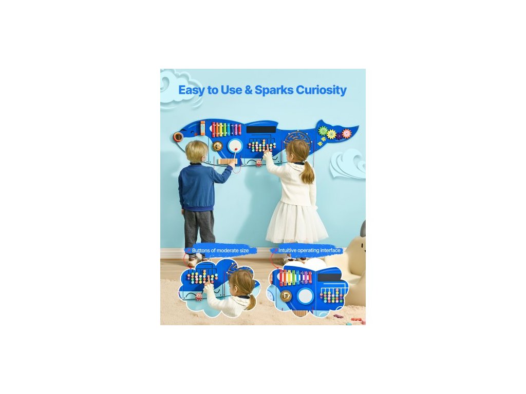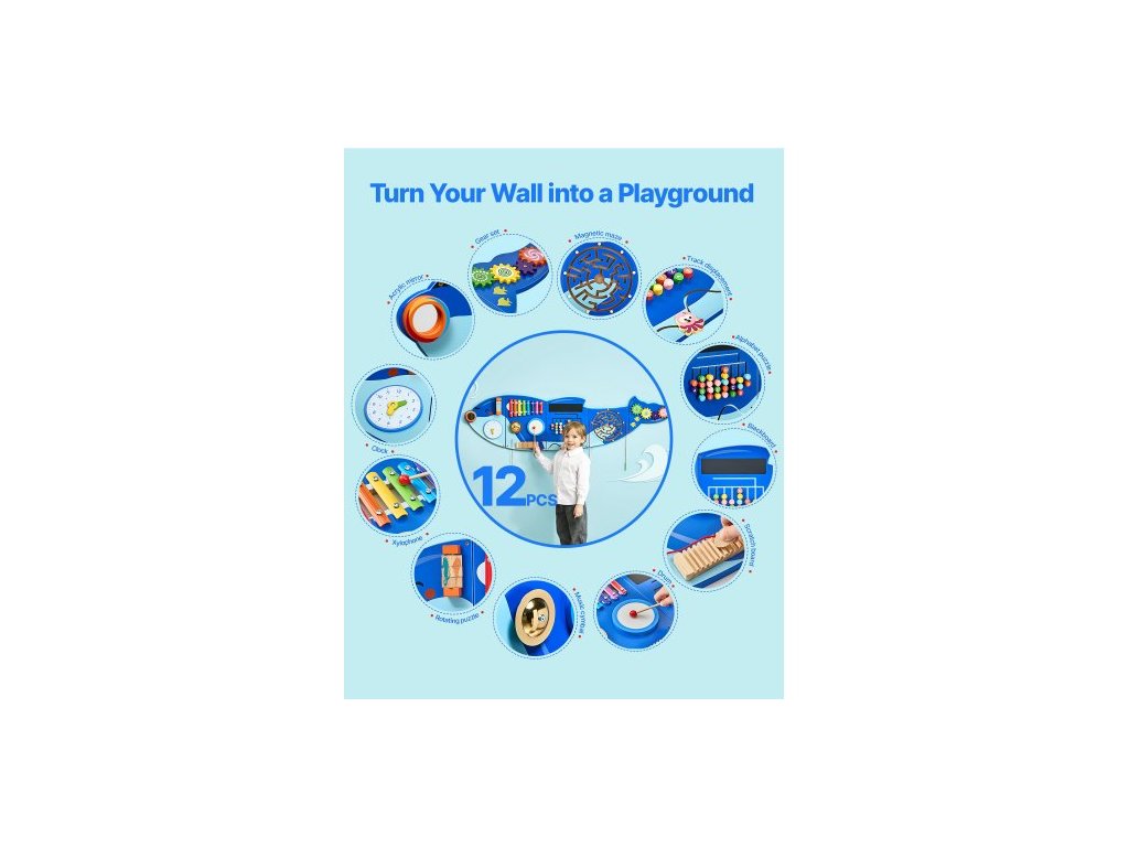 Orca Activity Wall, nástěnné panely, 12 aktivit, Montessori senzorická nástěnná hračka pro děti 3-12 let, Montessori vzdělávací centrum, ideální pro batolata, hernu a třídu