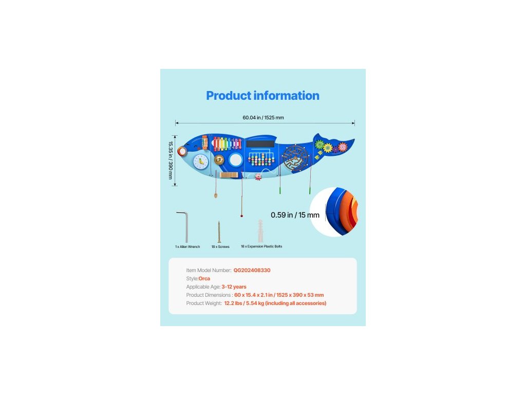 Orca nástěnné hrací panely, 12 aktivit, senzorická nástěnná hračka Montessori pro děti 3-12 let, vzdělávací centrum Montessori, ideální pro hernu pro batolata, školku a tříduVzdělávací hračka