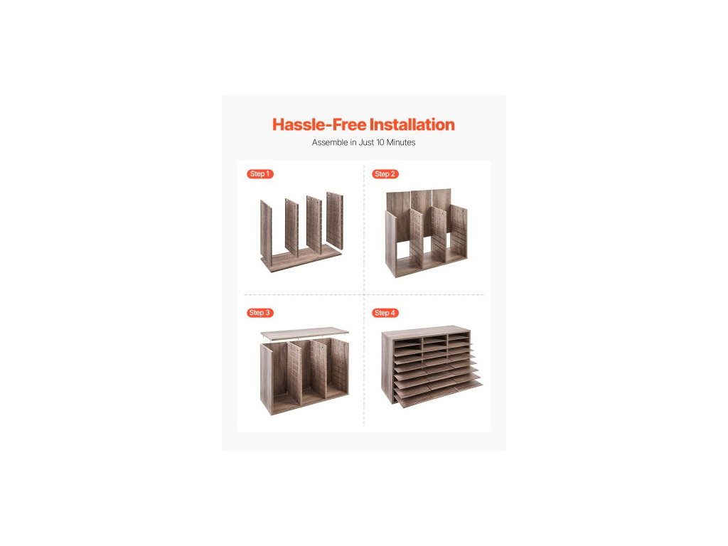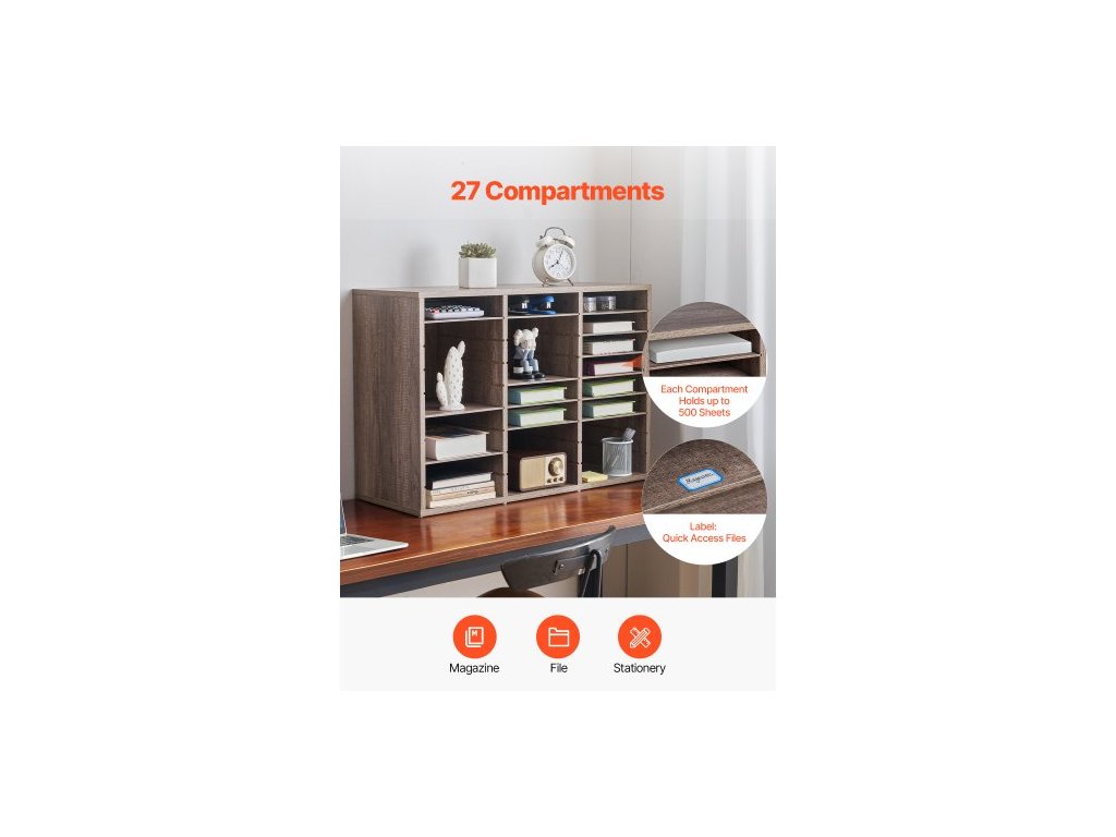 Organizér na literaturu , 27 přihrádek, kancelářská poštovní schránka s odnímatelnými policemi, třídič dřevěných poštovních schránek z dřevotřísky, kancelářský úložný prostor pro domácí učebnu, třídič složek na spisy, dokumenty, papír, černošedý