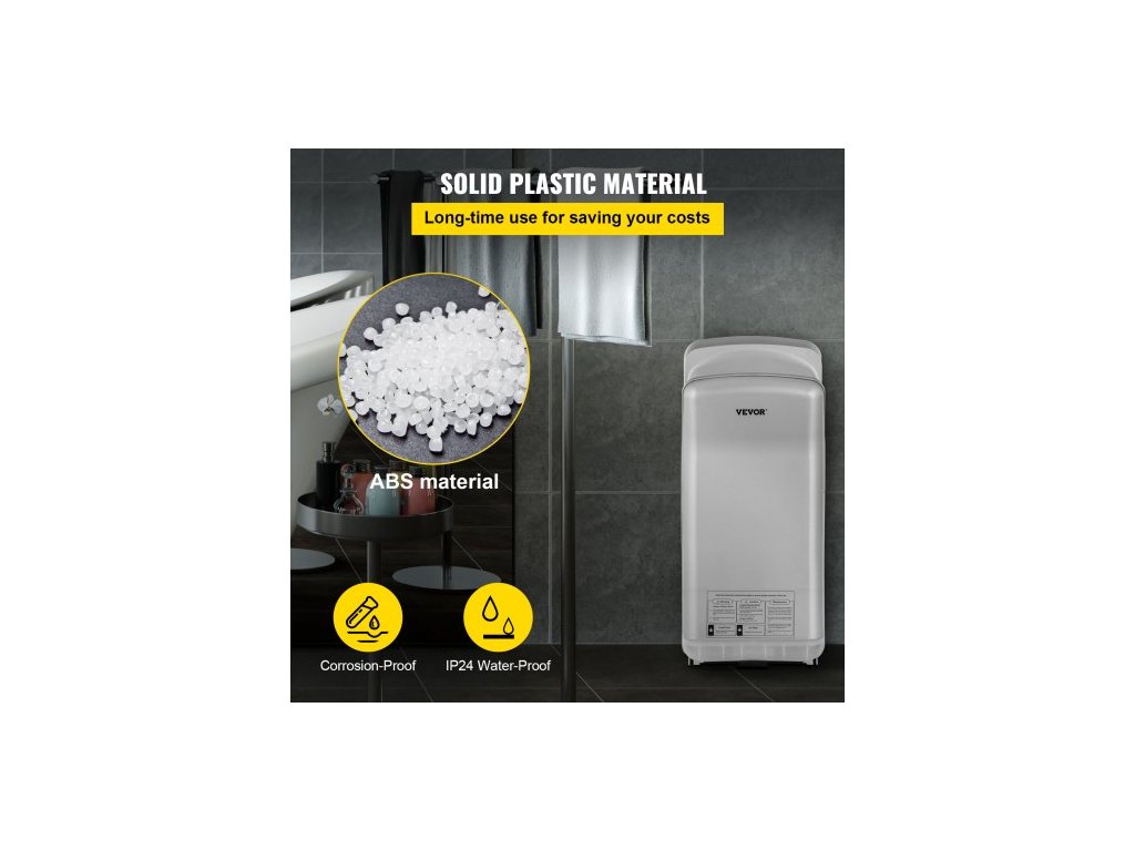 Osoušeč rukou Jet, prémiový elektrický komerční osoušeč rukou s čepelí, osoušeč rukou z ABS materiálu s HEPA filtrací, nástěnný osoušeč rukou, vertikální osoušeč rukou 2000 W 220 V, vysokorychlostní automatický infračervený stříbrný