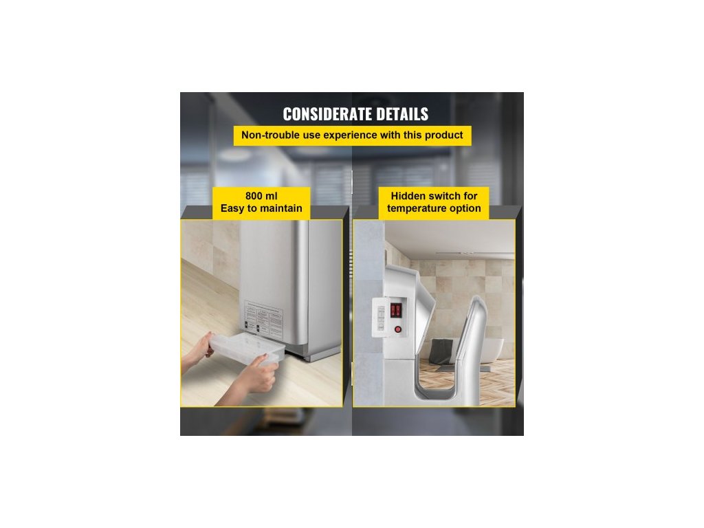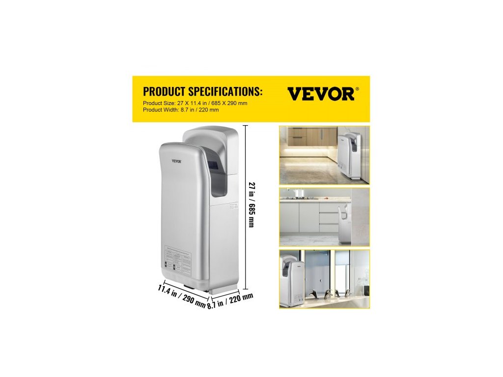Osoušeč rukou Jet, prémiový elektrický komerční osoušeč rukou s čepelí, osoušeč rukou s ABS vzduchem a HEPA filtrací, nástěnný osoušeč rukou, vertikální osoušeč rukou 2000 W 220 V, vysokorychlostní automatický infračervený stříbrný zářič, vysoce účinné sušení, zajišťující čistý vzduch, vysoce pevné tělo, dvojitá vlna a inteligentní design, humanizovaný design, víceúčelové použití, barva: stříbrná, napětí: 220 V, 50–60 Hz, typ motoru: motor s uhlíkovými kartáčky, model: VV-JHD-YS, účinnost sušení: 8–10 sekund, filtrace vzduchu: HEPA filtrace, povrchový materiál: ABS, rozměry (D x Š x V): 11,4 x 8,7 x 27 palců / 290 x 220 x 685 mm, příkon: 2000 W, hmotnost: 19,4 8,8 kg, teplota vzduchu: 43 °CDoplňkové parametry