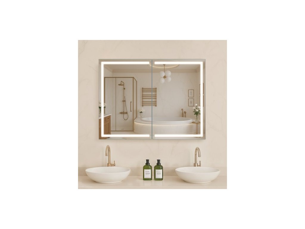 Osvětlená lékárnička se zrcadlem, nástěnná 60 x 80 cm, stmívatelná koupelnová lékárnička se 3 barvami a HD zrcadlem, paměťová funkce/nastavitelné police, úložný prostor/zásuvky a USB