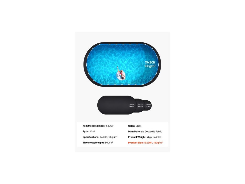 Oval Pool Liner Pad, 15 x 30 stop (4,5 x 9,2 m) pod bazénovou fólii pro nadzemní bazény, extra silná bazénová rohož, zabraňuje propíchnutí, podkladová podložka z recyklovaného geotextilie, prodlužuje životnost fólie
