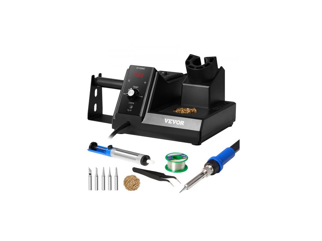 Pájecí stanice , sada pájecí stanice s digitálním displejem 80 W s 5 pájecími hroty, bezolovnatá pájka, odsávačka pájky, pinzeta, čistič hrotů, automatický pohotovostní režim a režim spánku, převod °C/°F