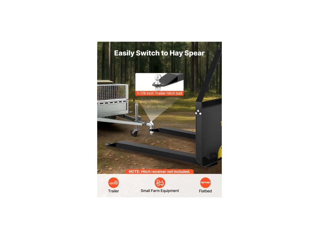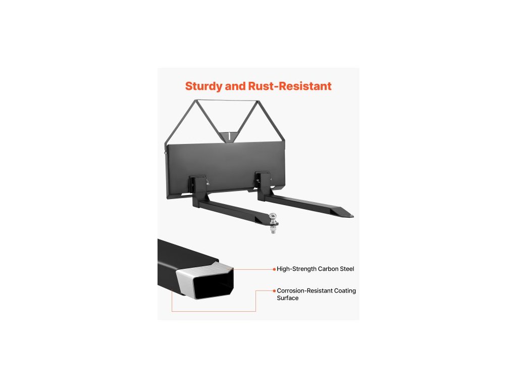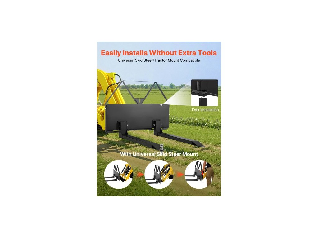 Jmenovitá nosnost: 2600 lbs / 1179 kg,Rozměry montážní desky: 45,7 x 5,7 x 32,4 palce / 1160 x 145 x 822 mm,Rozměry výrobku: 50 x 45,7 x 35,6 palce / 1270 x 1160 x 905 mm,Vzdálenost vidlí: 21 palců / 532 mm,Tloušťka vidlice: 50,76 mm,Použitelná délka vidlice: 905 mm,Rozměr koule tažného zařízení: 47,6 mm,Šířka jedné vidlice: 100 mm,Celková délka vidlice: 1220 mm,Číslo modelu položky: WBS-027,Hmotnost výrobku: 63,3 kg,Kompatibilní vozidlo: Univerzální smykem řízený nakladač,Hlavní materiál: Q235A + povrchová úprava