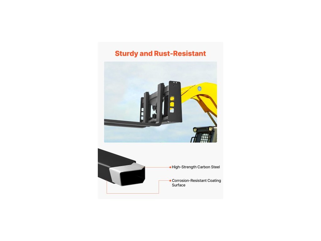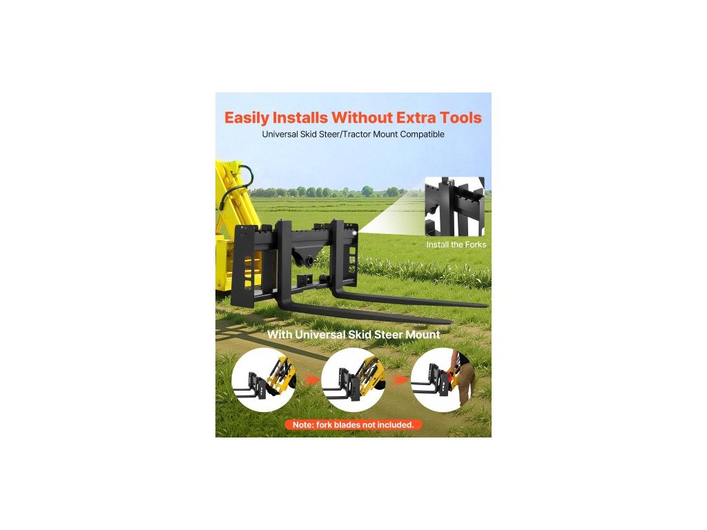 Paletový rám pro smykem řízené nakladače, jmenovitá nosnost 1814 kg, vidlice pro palety 115 cm s 50,8mm závěsným uchycením a objímkami, vhodný pro nakladače a traktory, rychloupínací úchyt, pouze rám