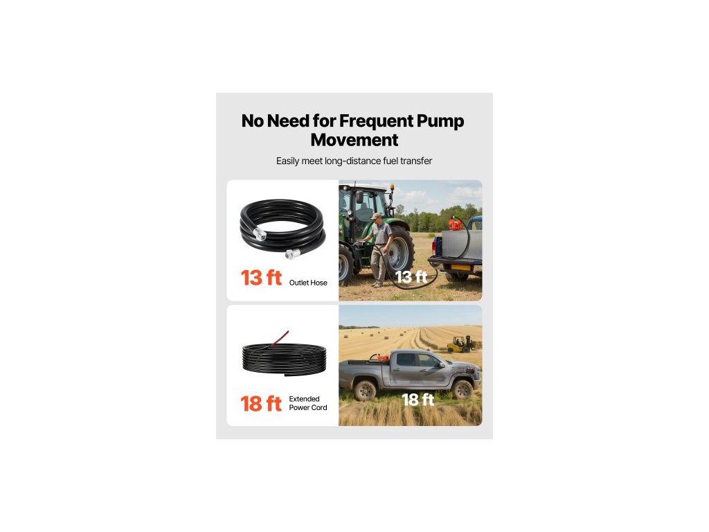 Palivové čerpadlo , 12V DC 76 l/min (20 GPM) 186W (1/4 HP) dieselové čerpadlo, odsávací čerpadla s ruční tryskou, výtlačnou hadicí a sacím potrubím, pro benzín, naftu, petrolej, směsi etanolu a methanolu a bionaftu