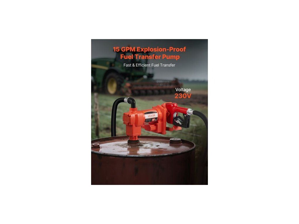 Palivové přečerpávací čerpadlo 230V, 15 GPM 57 l/min, elektrické olejové přečerpávací čerpadlo na střídavý proud, s automatickým vypínáním palivové trysky a výtlačné hadice, sada pro vysoký průtok pro benzín, naftu, petrolej, bionaftu a směsi etanoluVysoký průtok a vysoká účinnost přečerpávání paliva