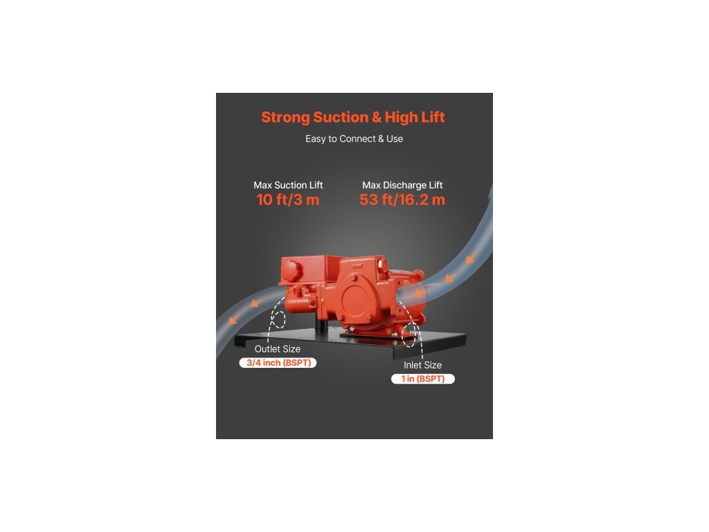 Průtok: 20 GPM/76 l/min,Napětí/frekvence: AC 110-120V, 60Hz,Číslo modelu položky: KEX-20AC-T01,Max. zdvih (výtlačný): 53 stop/16,15 m,Výkon: 0,33HP/250W,Max. sací výška: 10 stop/3 m
