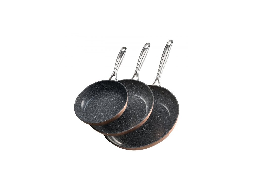 Pánev , hliníkové pánve na vejce, 3dílná (200, 270, 300 mm), odolné keramické pánve s tepelně odolnou rukojetí, kuchyňské nádobí, pro troubu, plyn, elektřinu, indukci, šedáOdolné materiály
