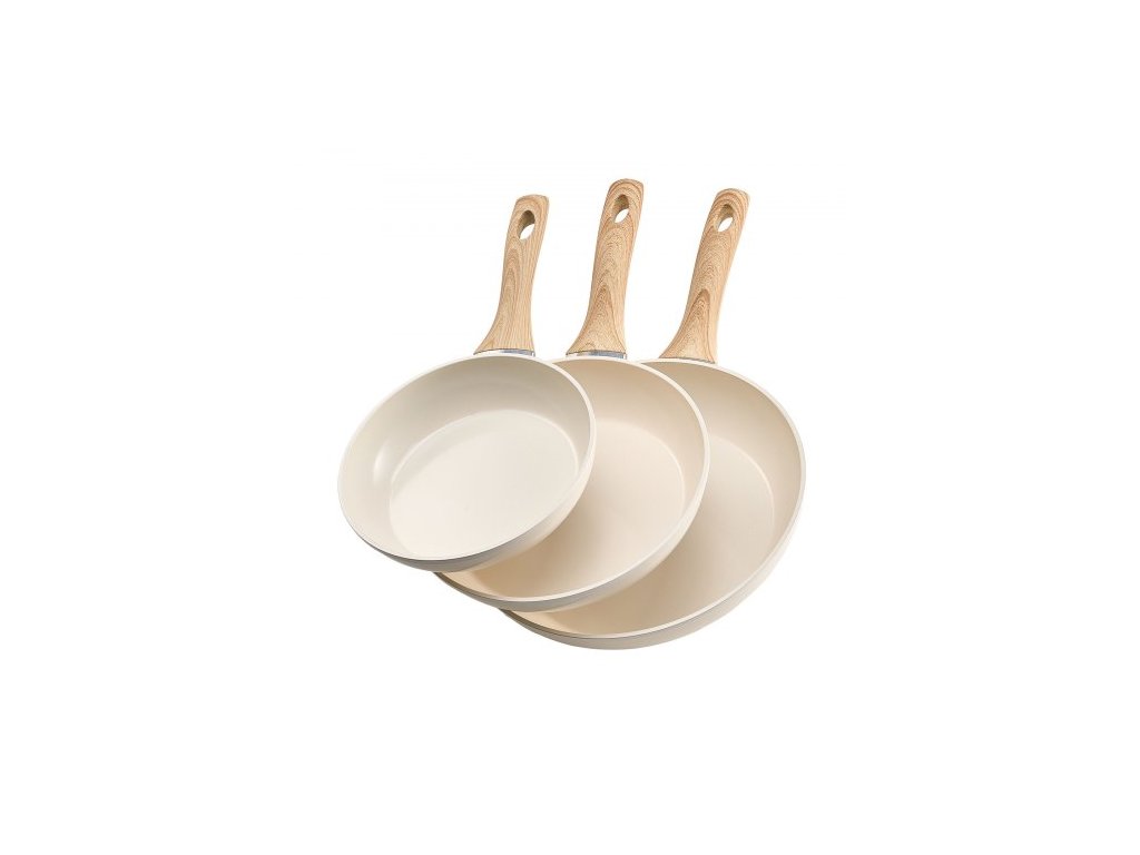 Pánev , hliníkové pánve na vejce, 3 ks (200, 240, 280 mm), odolné keramické pánve s tepelně odolnou rukojetí, kuchyňské nádobí pro plyn, elektřinu a indukci, béžováOdolné materiály