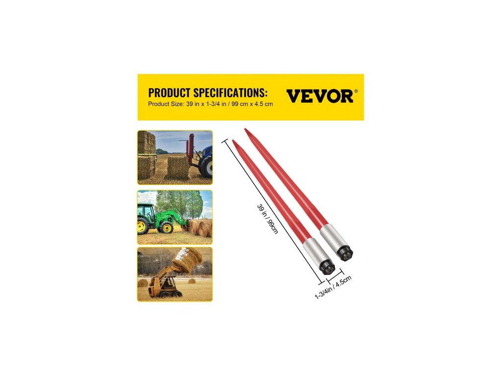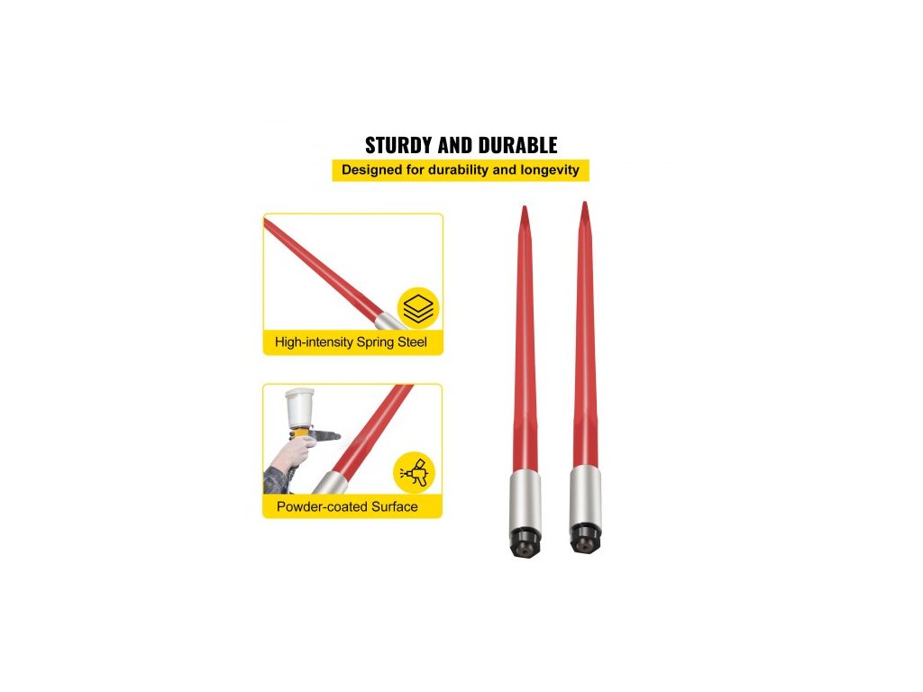 Pár oštěpů na balíky 39" Oštěp na balíky, nosnost 3000 liber, Rychloupínací hrot na balíky, Čtvercové oštěpy na balíky 1 3/4", Červeně potažené vidle na balíky, hrot na balíky s šestihrannou maticí a objímkou pro lžíce, traktory a nakladačeVysoce kvalitní pružinová ocel