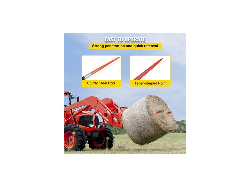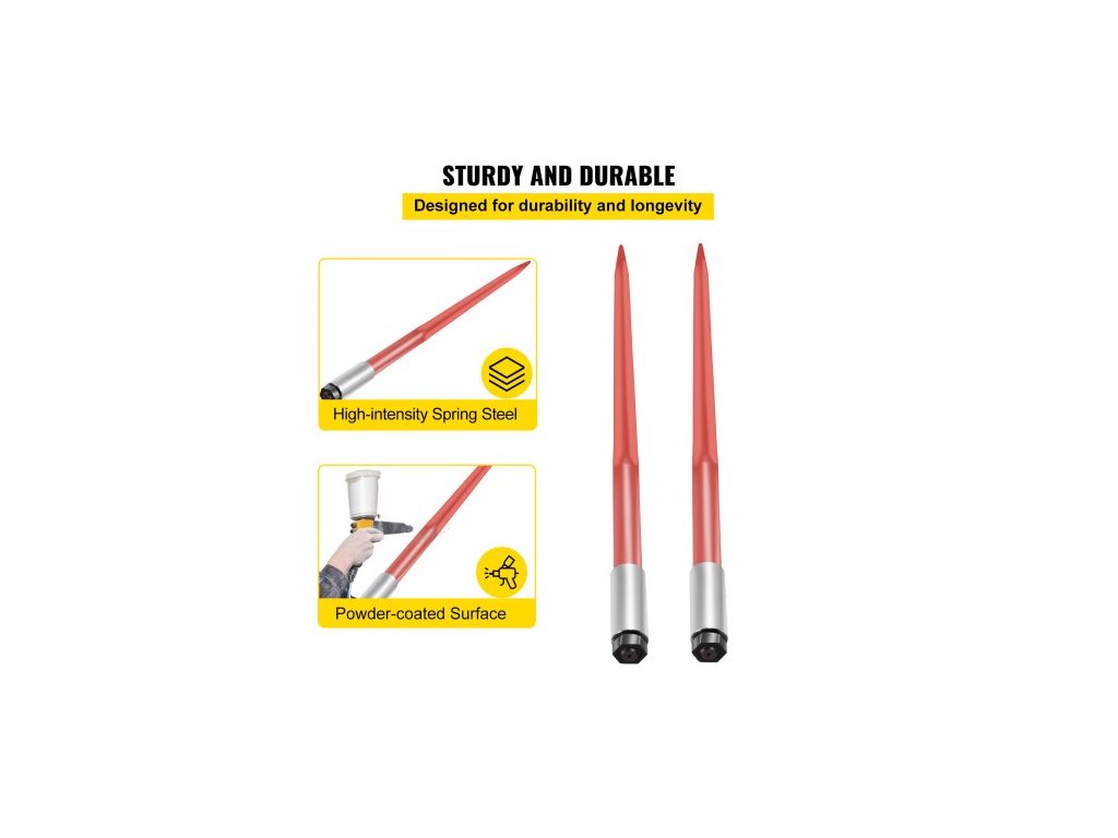 Pár oštěpů na balíky 43" Oštěp na balíky, nosnost 3000 liber, Rychloupínací hrot na balíky, Čtvercové oštěpy na balíky 1 3/4", Červeně potažené vidle na balíky, hrot na balíky s šestihrannou maticí a objímkou pro lžíce, traktory a nakladačeVysoce kvalitní pružinová ocel