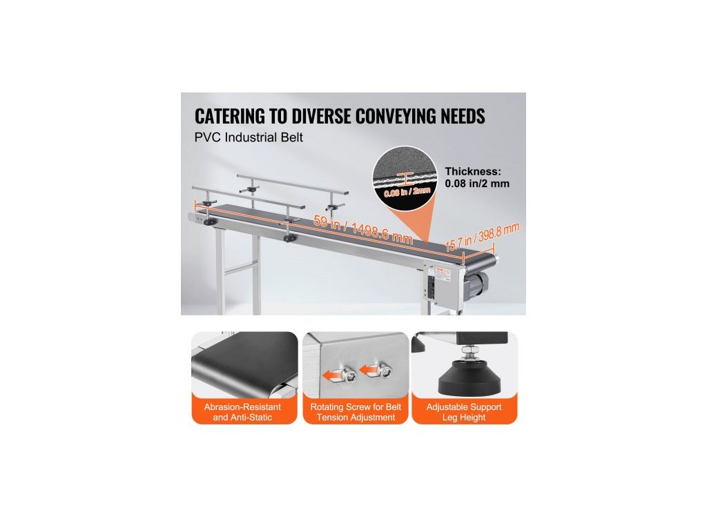 Pásový dopravník , dopravníkový stůl 59 x 15,7 palců, vysoce odolný motorizovaný pásový dopravník z nerezové oceli pro aplikace inkoustového kódování, poháněný PVC pás, antistatická nastavitelná rychlost (dvojité zábradlí)