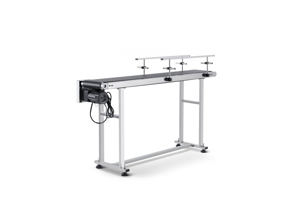 Pásový dopravník , dopravníkový stůl 59 x 7,8 palců, vysoce odolný motorizovaný pásový dopravník z nerezové oceli pro aplikace inkoustového kódování, poháněný PVC pás, antistatická nastavitelná rychlost (dvojité zábradlí)
