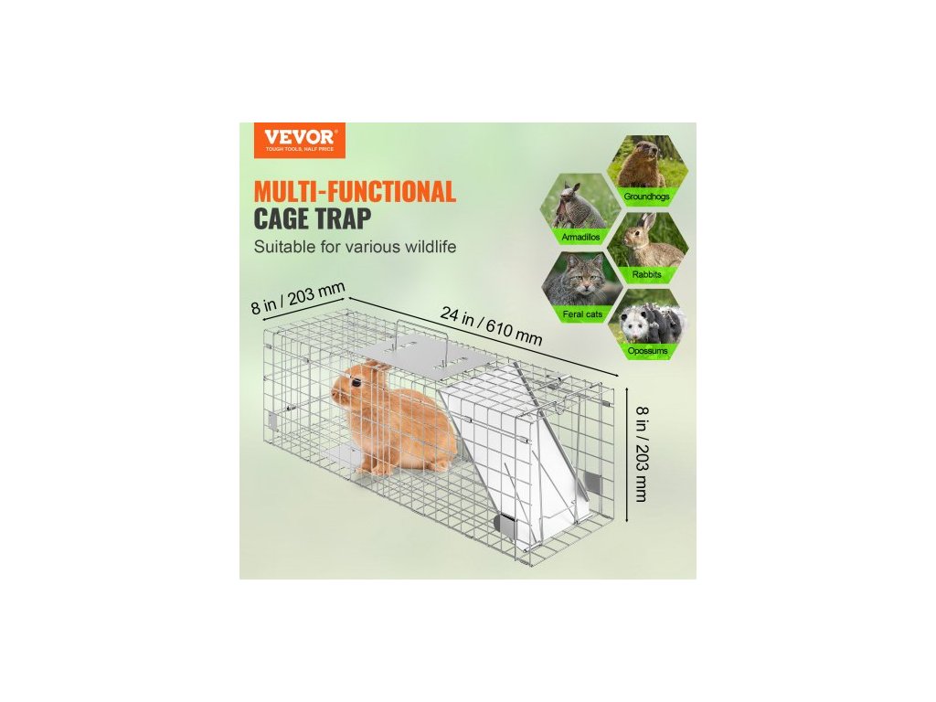 Past na živá zvířata v kleci, 61 x 20,3 x 20,3 cm, humánní past na kočky, pozinkované železo, skládací past na zvířata s rukojetí pro králíky, toulavé kočky, veverky, mývaly, sviště a vačice