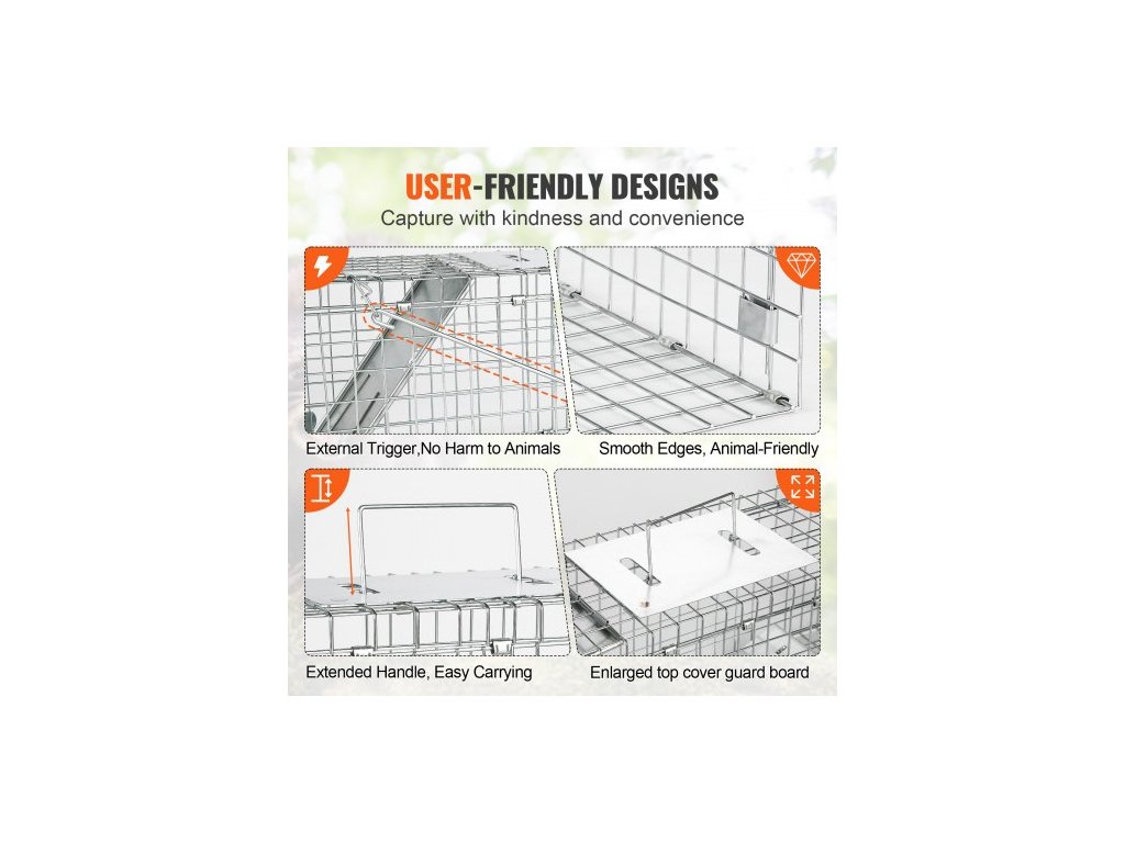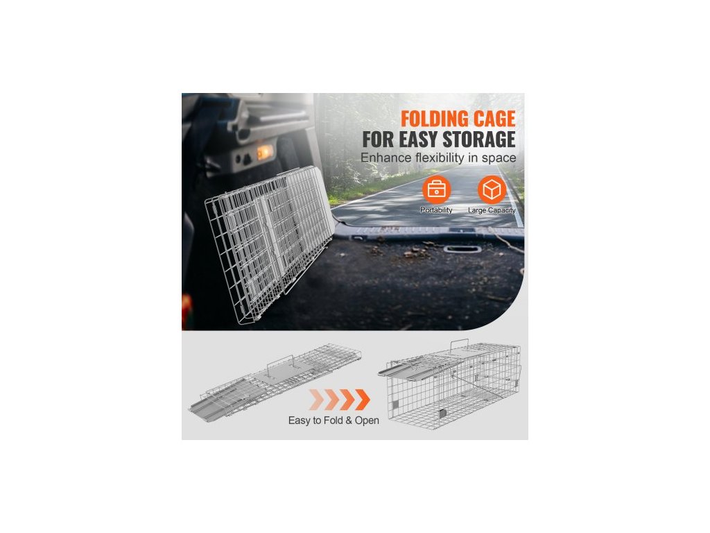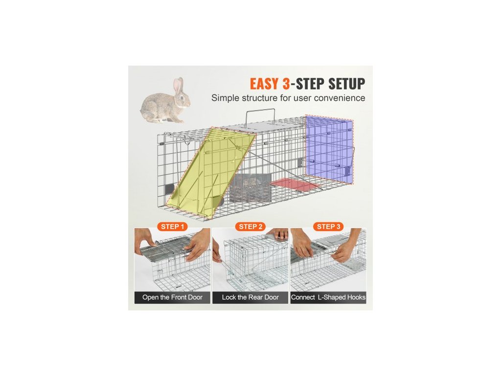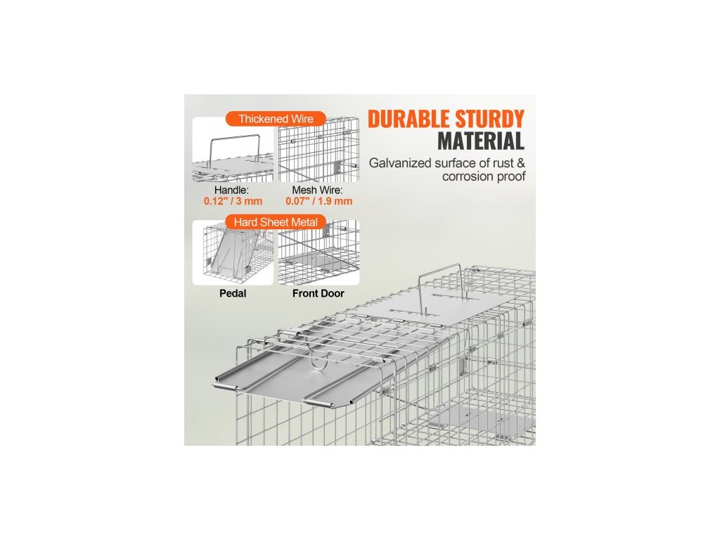 Past na živá zvířata s klecí, 61 x 20,3 x 20,3 cm Humánní past na kočky z pozinkovaného železa, Skládací past na zvířata s rukojetí pro králíky, toulavé kočky, veverky, mývaly, sviště a vačiceŠetrné odchytávání