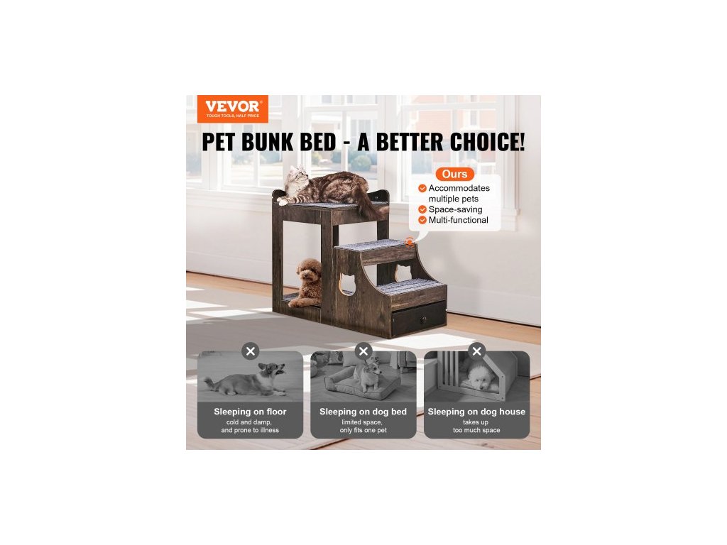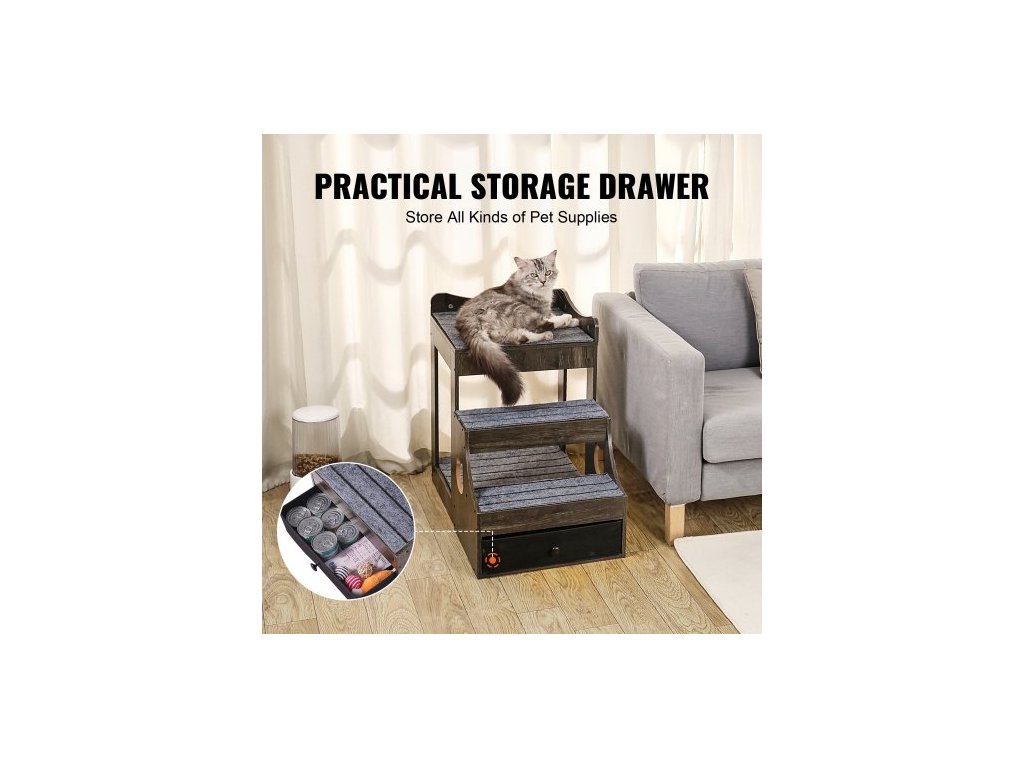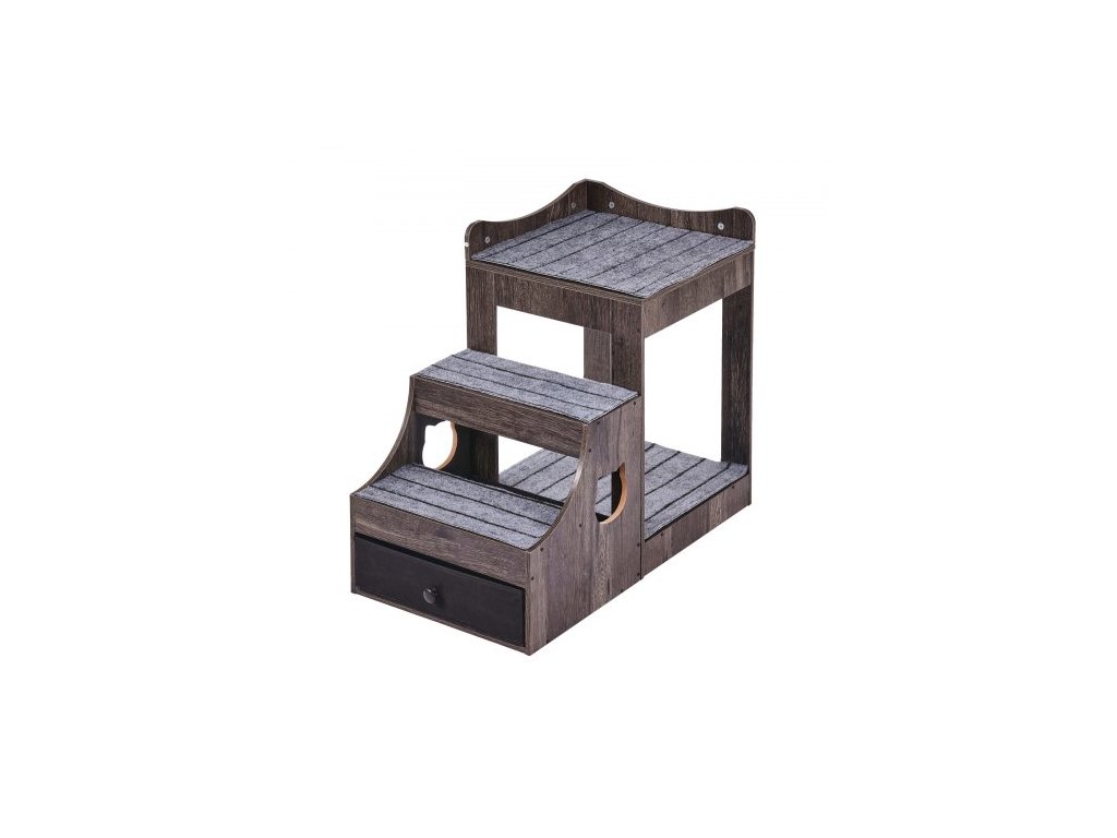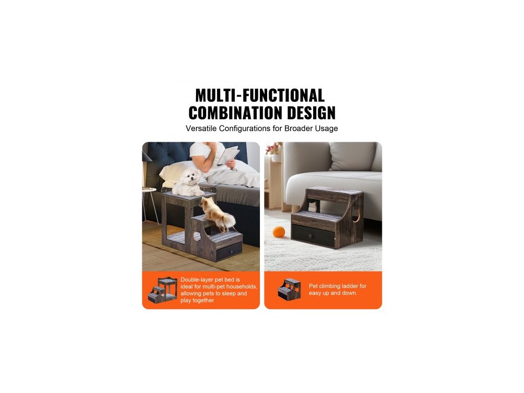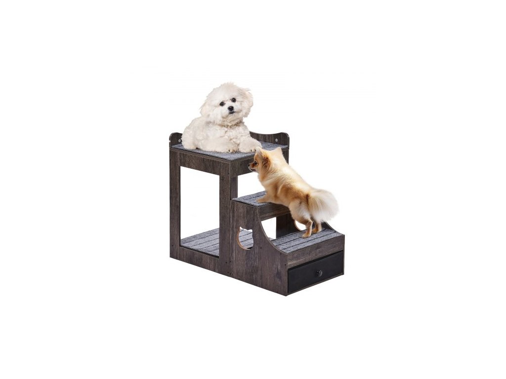 Patrová postel pro domácí mazlíčky s odnímatelnými schody, okenní bidýlko pro psy/kočky s úložným prostorem, víceúrovňová postel, okenní bidýlko, noční gauč pro psy, sedadlo pro malé domácí mazlíčky, vnitřní použití (šedá)Multifunkční pelíšek pro domácí mazlíčky