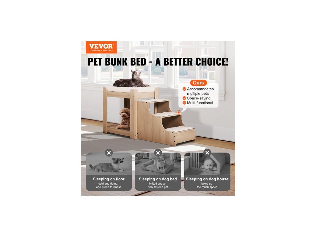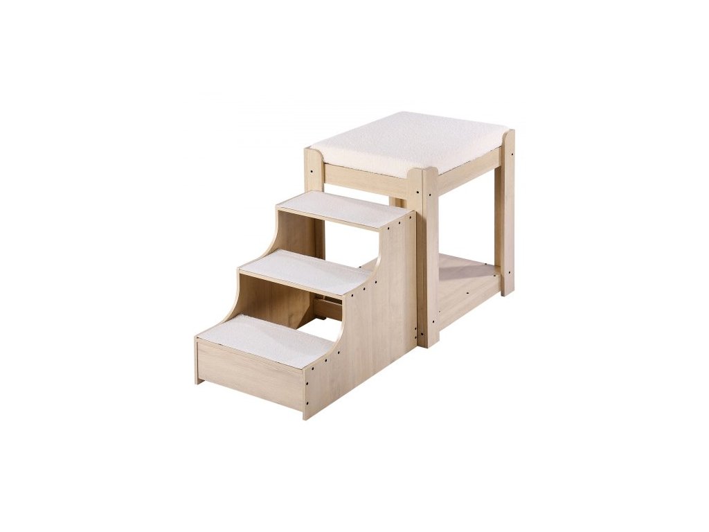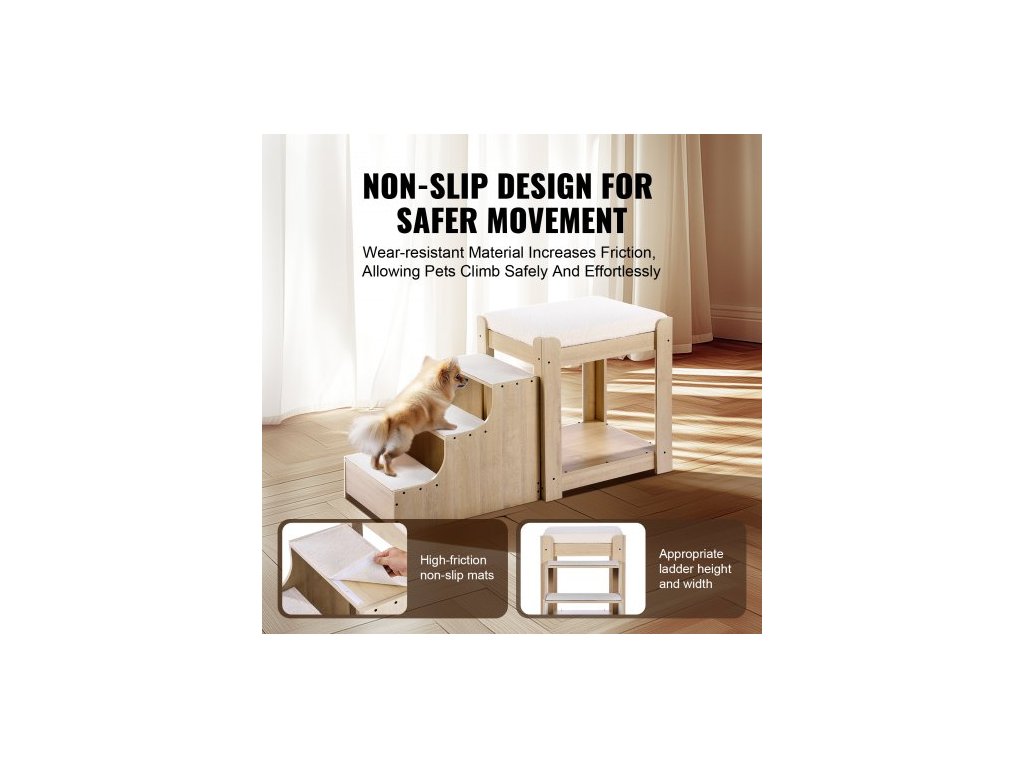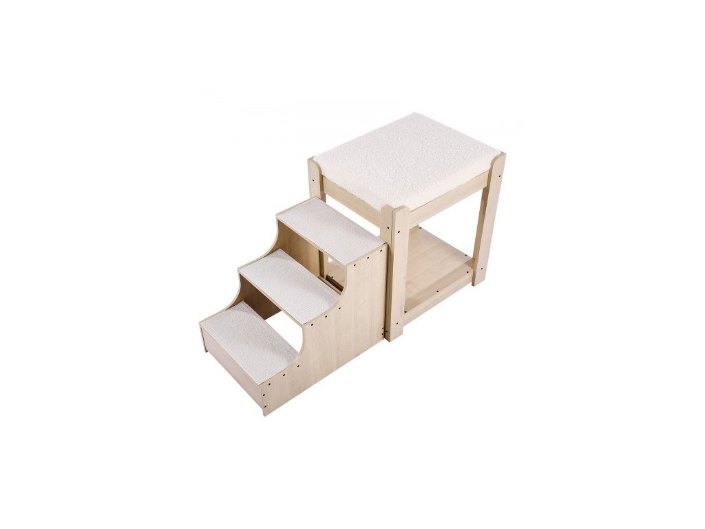 Patrová postel pro domácí mazlíčky se schody, okenní bidýlko pro psy/kočky, víceúrovňová postel s okenním bidýlkem a nočním stolkem pro psy, vyvýšená sedací plošina s pěnovým polštářem, pohovka s pelíškem pro použití u postele v interiéru (béžová)Multifunkční pelíšek pro domácí mazlíčky