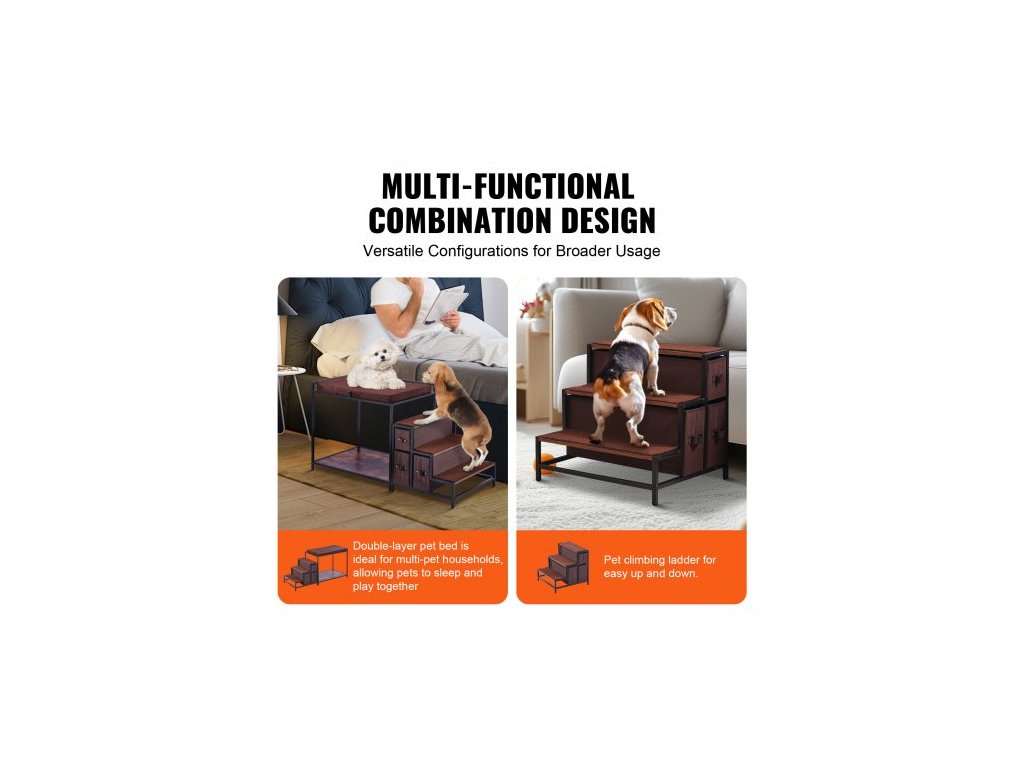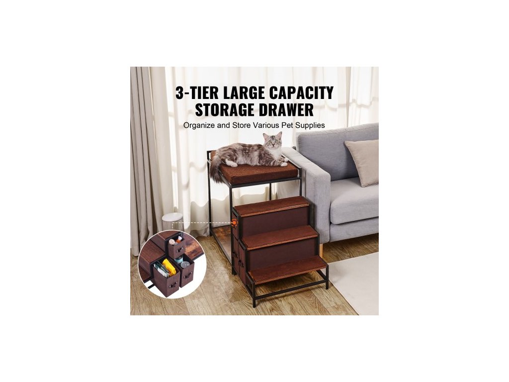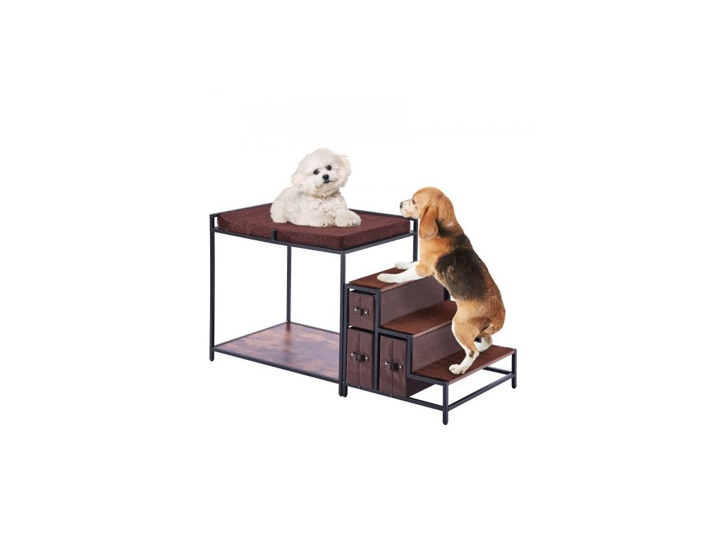 palanda pro domácí mazlíčky se schody, okenní bidýlko pro psy/kočky s úložným prostorem, víceúrovňová postel, okenní bidýlko, psí noční gauč, sedací plošina pro středně velké domácí mazlíčky, vnitřní použití (tmavě hnědá)Multifunkční pelíšek pro domácí mazlíčky